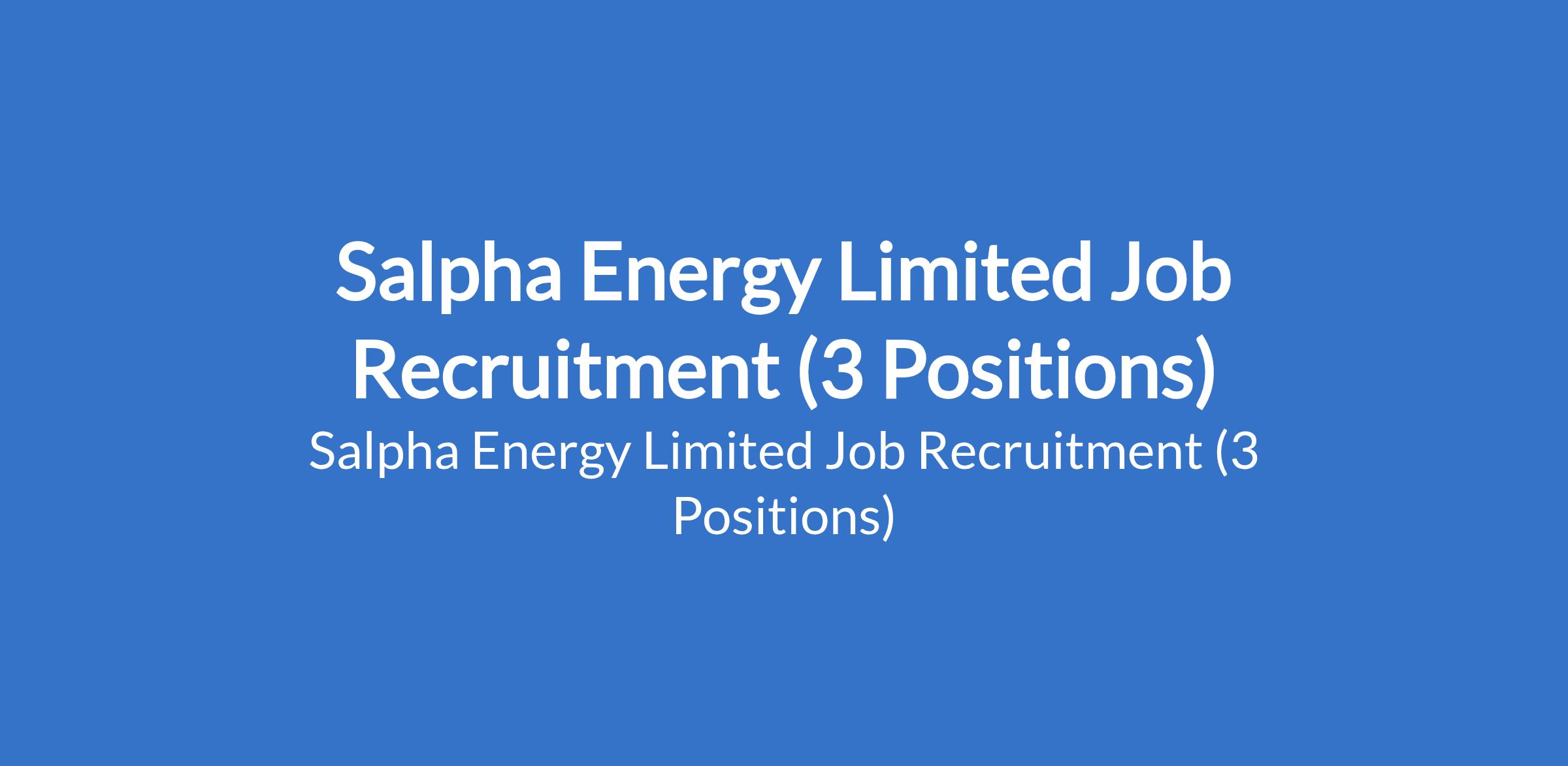 Salpha Energy Limited Job Recruitment (3 Positions)