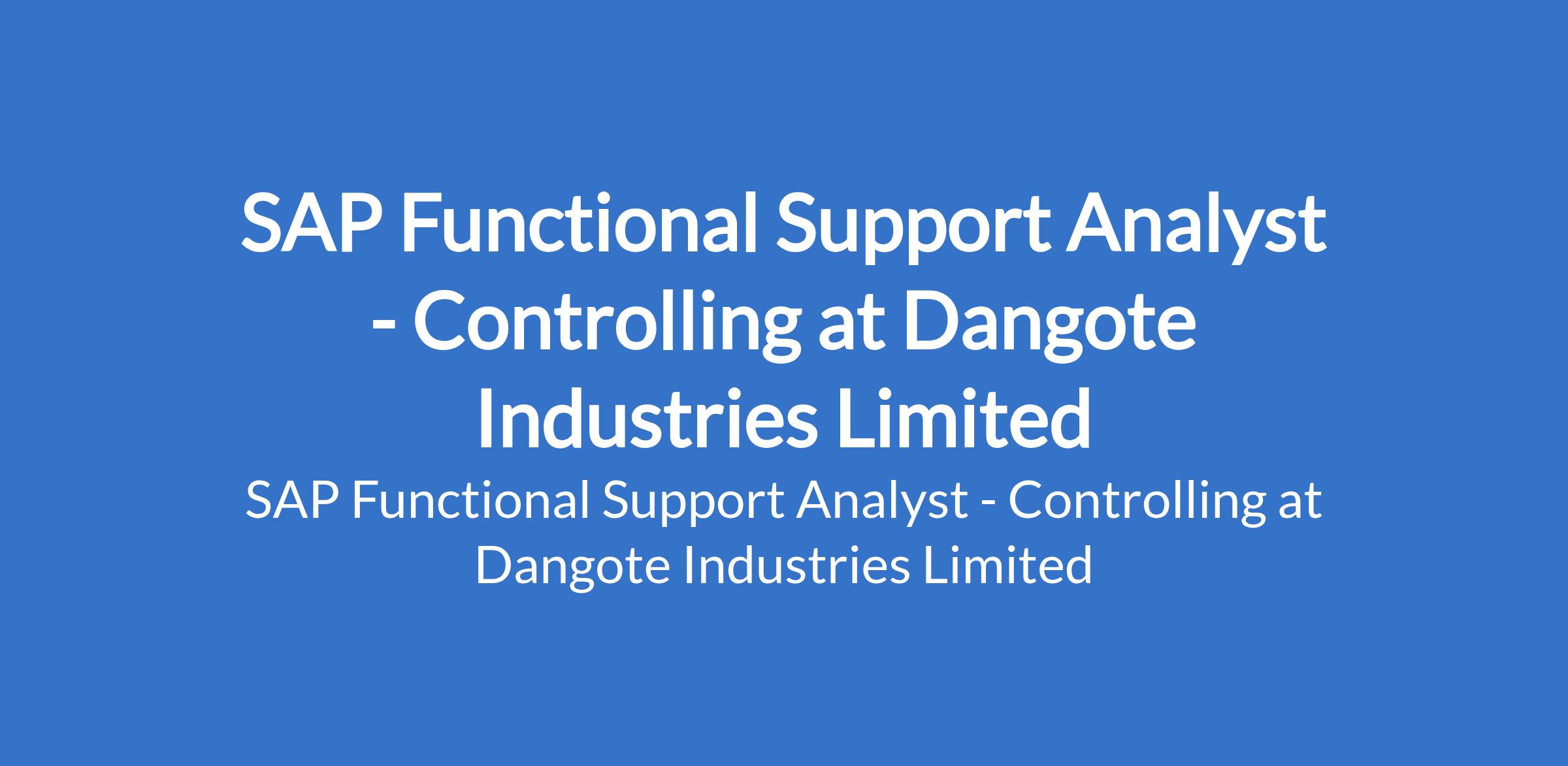Dangote Industries Limited is recruiting to fill the position of: SAP Functional Support Analyst - Controlling. The position is located in Lagos State. Interested candidates should possess an HND or Bachelor's Degree in Computer Science / Computer Engineering with 3 - 6 years of experience with relevant SAP working as a consultant or SAP CO Support Analyst.