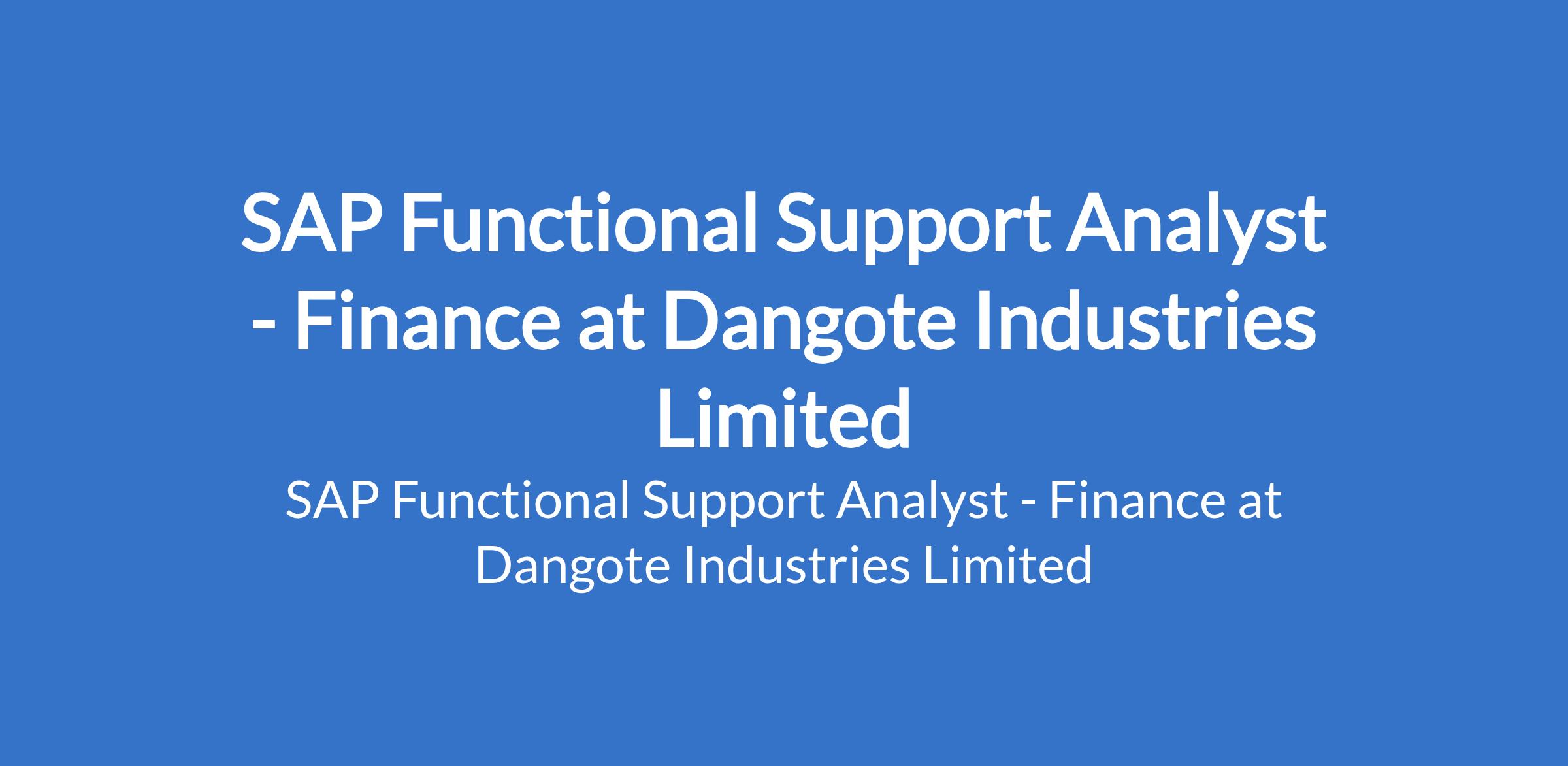 Dangote Industries Limited is recruiting to fill the position of: SAP Functional Support Analyst - Finance. The position is located in Lagos State. Interested candidates should possess a HND or Bachelor's Degree in Computer Science / Computer Engineering with 3 - 6 years of experience with relevant SAP working as a consultant or SAP FI Support Analyst.