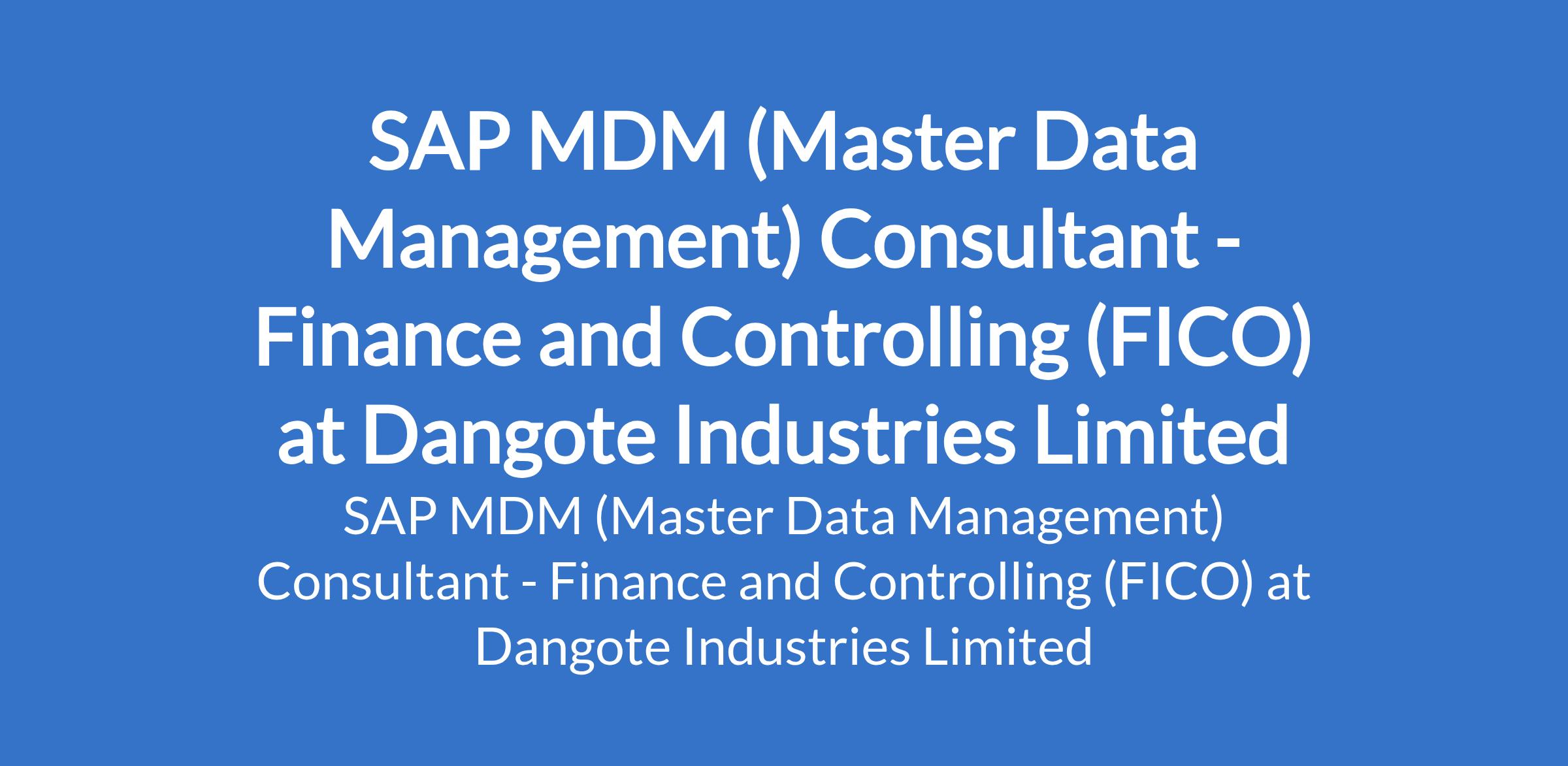 Dangote Industries Limited is recruiting to fill the position of: SAP MDM (Master Data Management) Consultant - Finance and Controlling (FICO). The position is located in Lagos State. Interested candidates should possess a Bachelors Degree in Information Technology, Computer Science, Engineering, or a related field with 5 - 7 years of experience in SAP MDM, with a focus on Finance and Controlling.