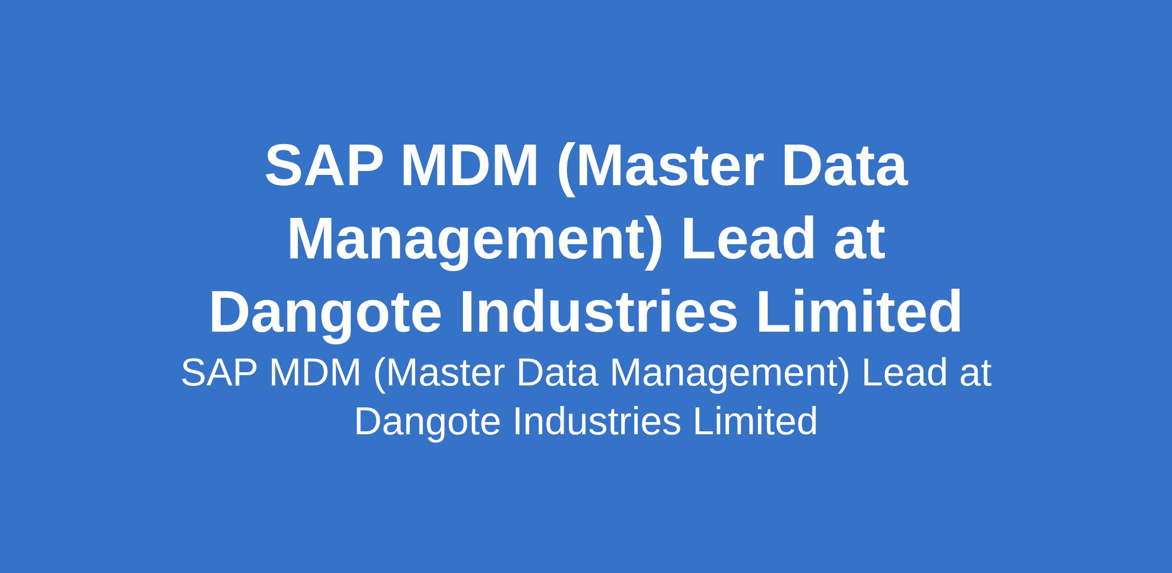 Dangote Industries Limited is recruiting to fill the position of: SAP MDM (Master Data Management) Lead. The position is located in Lagos State. Interested candidates should possess a Bachelors Degree in Information Technology, Computer Science, Business Administration, or a related field with 8 - 10 years of experience in SAP MDM, with a focus on leading MDM initiatives.
