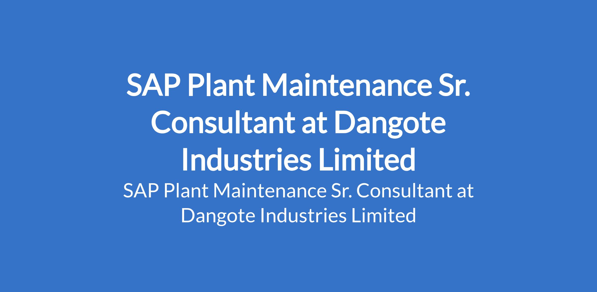 Dangote Industries Limited is recruiting to fill the position of: SAP Plant Maintenance Sr. Consultant. The position is located in Lagos State. Interested candidates should possess a Bachelor's Degree in Mechanical Engineering, Electrical Engineering, Industrial Engineering, Information Technology, Computer Science, or a related field with 8+ years of dedicated, hands-on experience as an SAP PM Consultant.