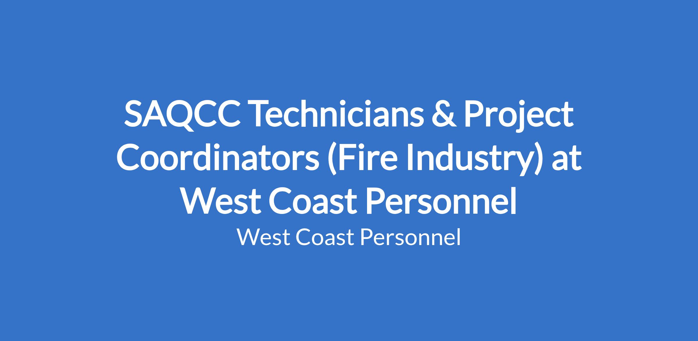 SAQCC Technicians & Project Coordinators (Fire Industry) at West Coast Personnel