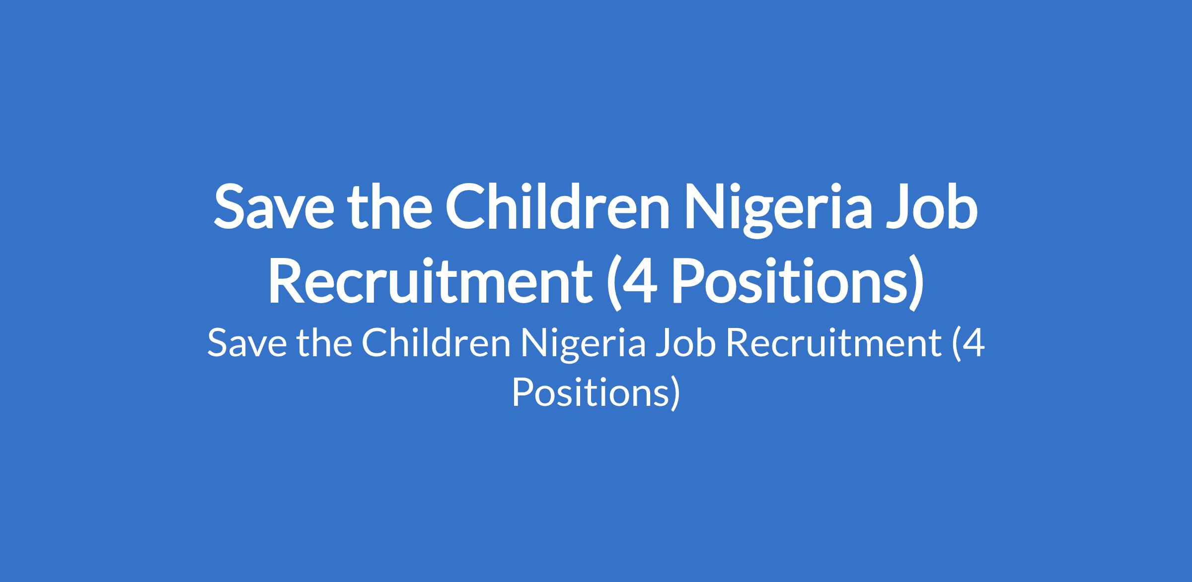 Save the Children Nigeria Job Recruitment (4 Positions)