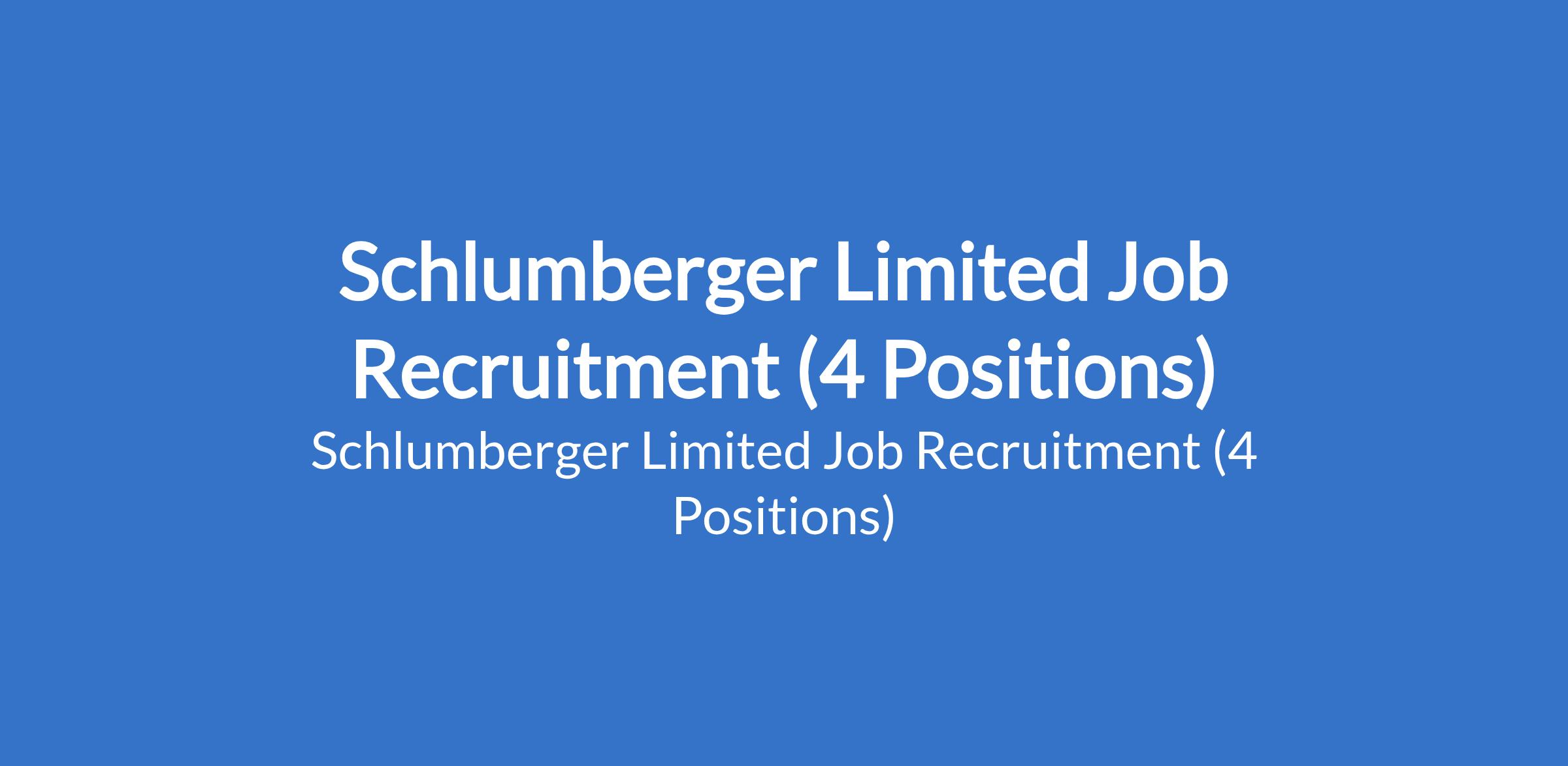 Schlumberger Limited Job Recruitment (4 Positions)