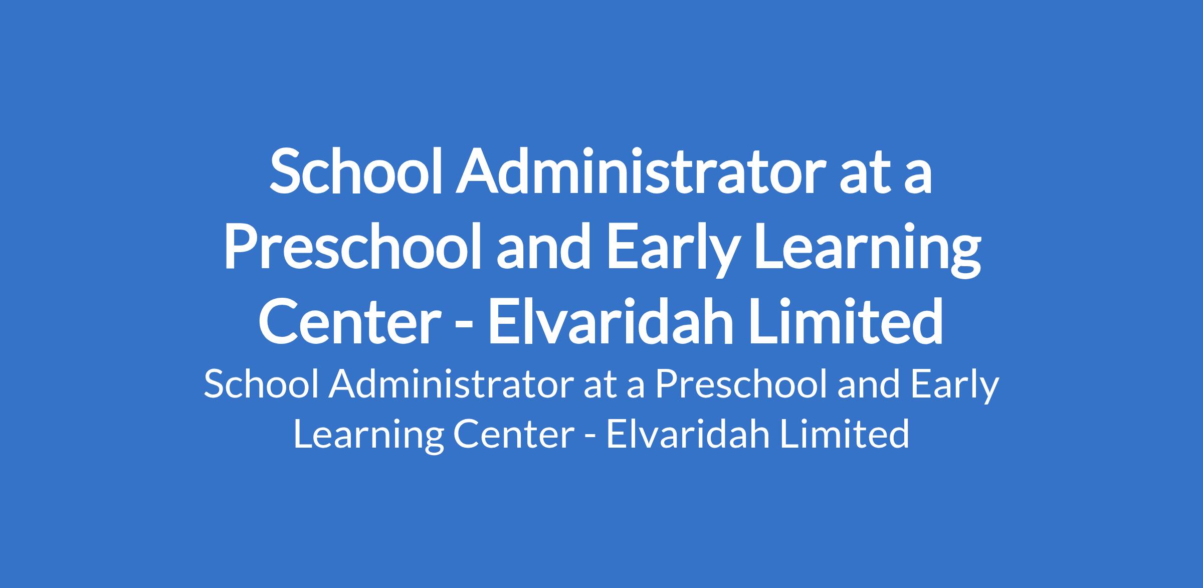 Elvaridah Limited - Our client, a preschool and early learning center is recruiting to fill the position of: School Administrator. The position is located in Lekki, Lagos State. Salary: N150,000 / Month. Interested candidates should possess relevant qualifications and experience.