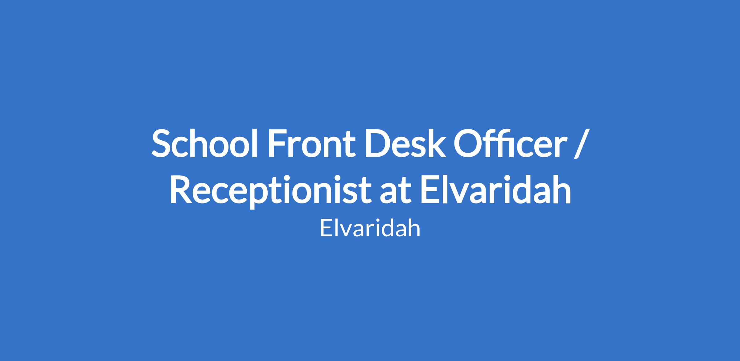 School Front Desk Officer / Receptionist at Elvaridah