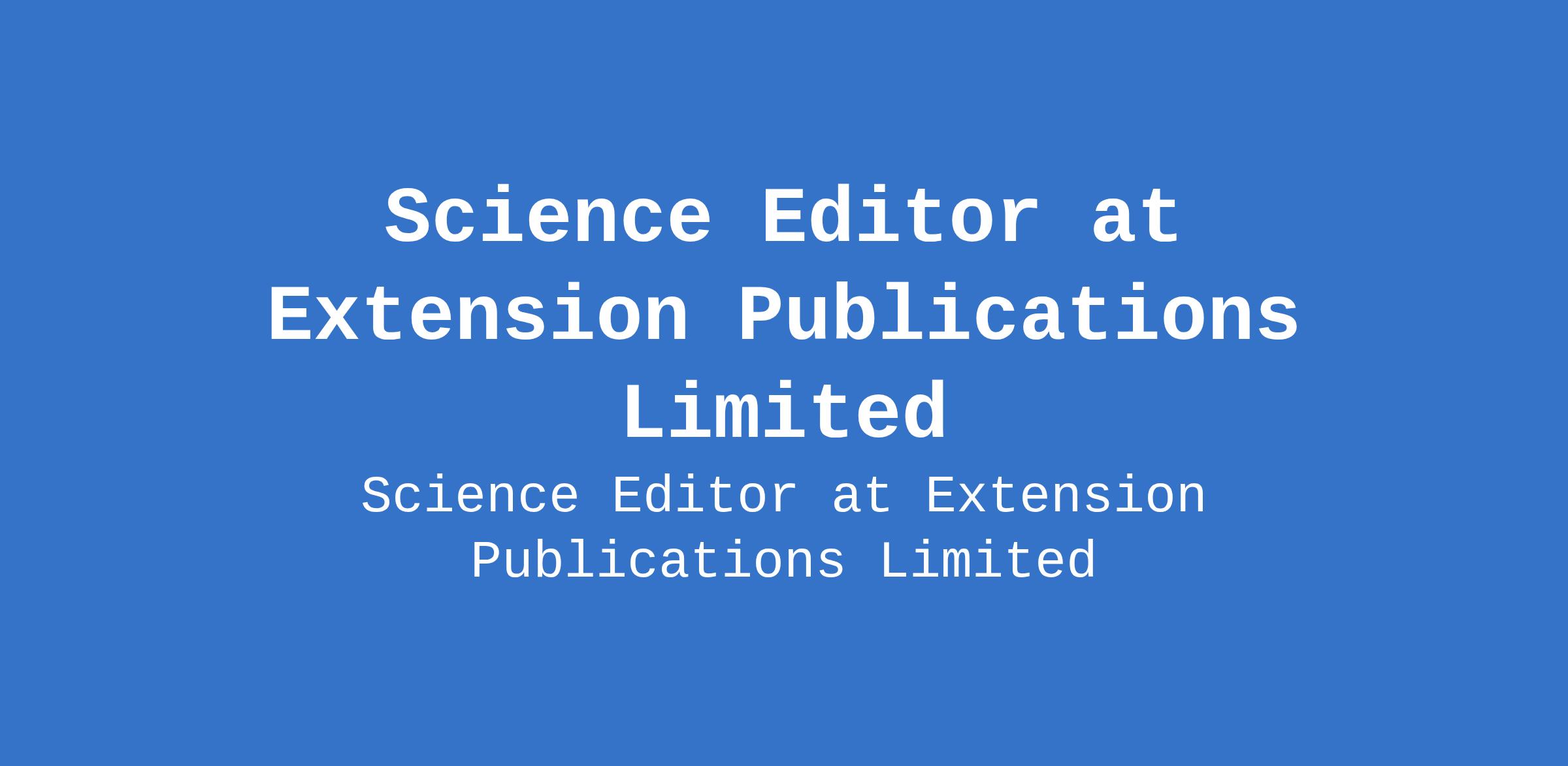 Extension Publications Limited is recruiting to fill the position of: Science Editor. The position is located in Ibadan, Oyo State. Salary: N100,000 - N150,000 per month. Interested candidates should possess a minimum of a Bachelor's Degree in the core sciences from a recognised institution (A master's degree is an advantage).