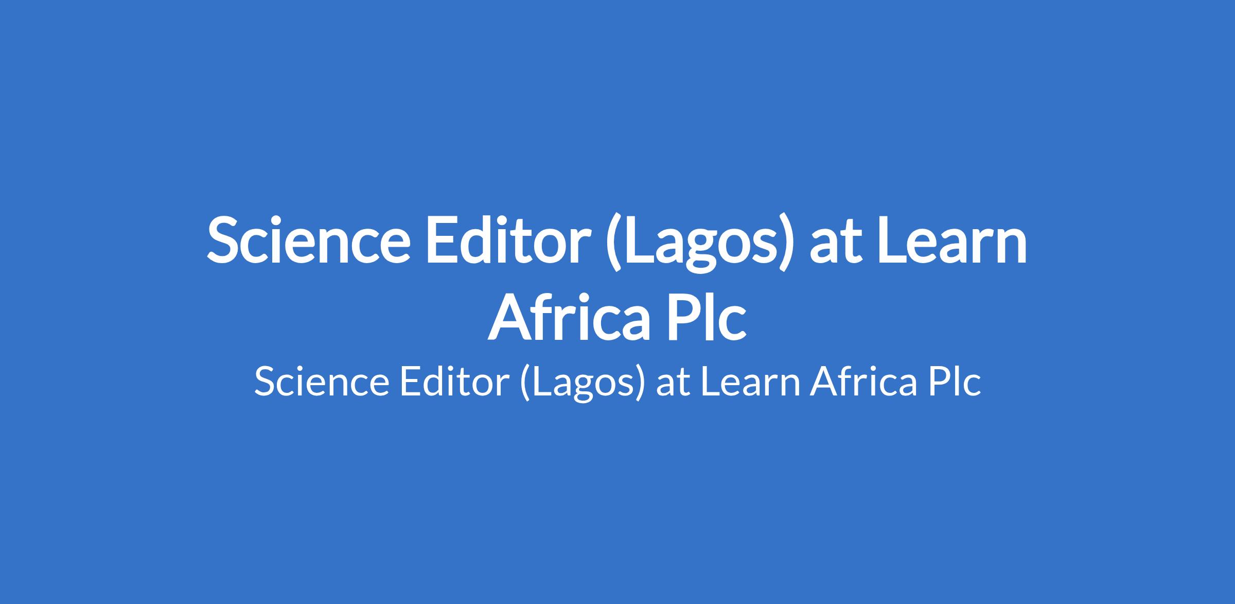 Science Editor (Lagos) at Learn Africa Plc