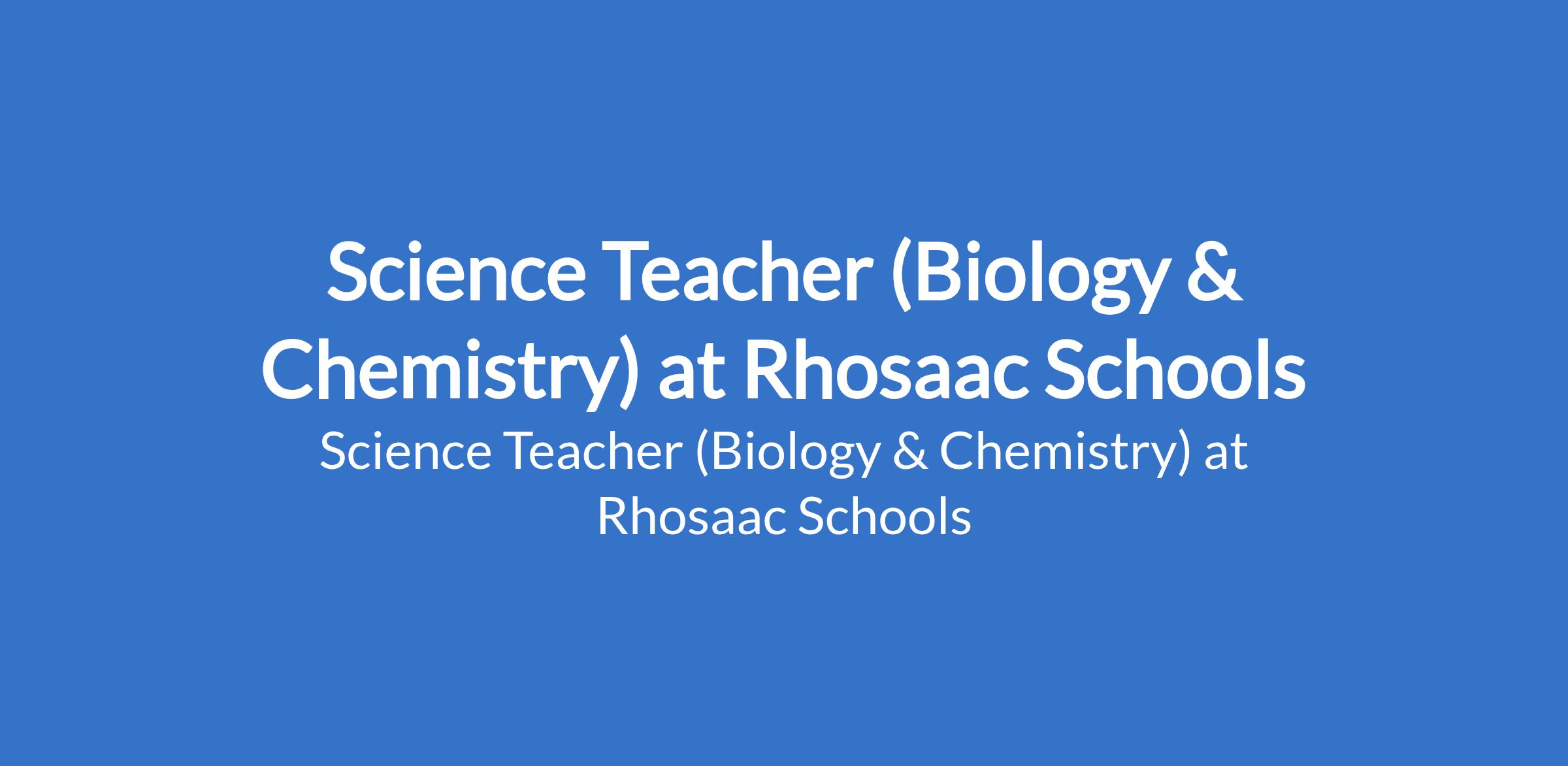 Rhosaac Schools is recruiting to fill the position of: Science Teacher (Biology & Chemistry). The position is located in Aboru, Lagos State. Interested candidates should possess a minimum of an NCE / OND / Bachelor's Degree in a relevant field with experience.