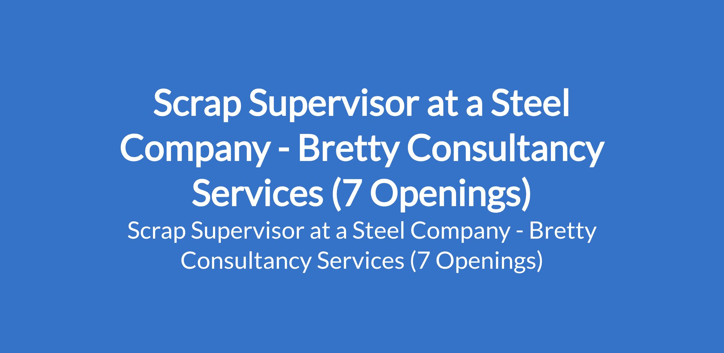 Bretty Consultancy Services - Our client a steel company is recruiting to fill the position of: Scrap Supervisor. The position is located in Abuja (FCT), Niger, Benue, Kaduna, Kano, Kogi, and Nasarawa States. Interested candidates should possess a B.Eng Mechanical, Chemical, Metalurgical and Materials Engineering or in any related course with a minimum of 5 years experience in a related field, preferably in the steel industry.