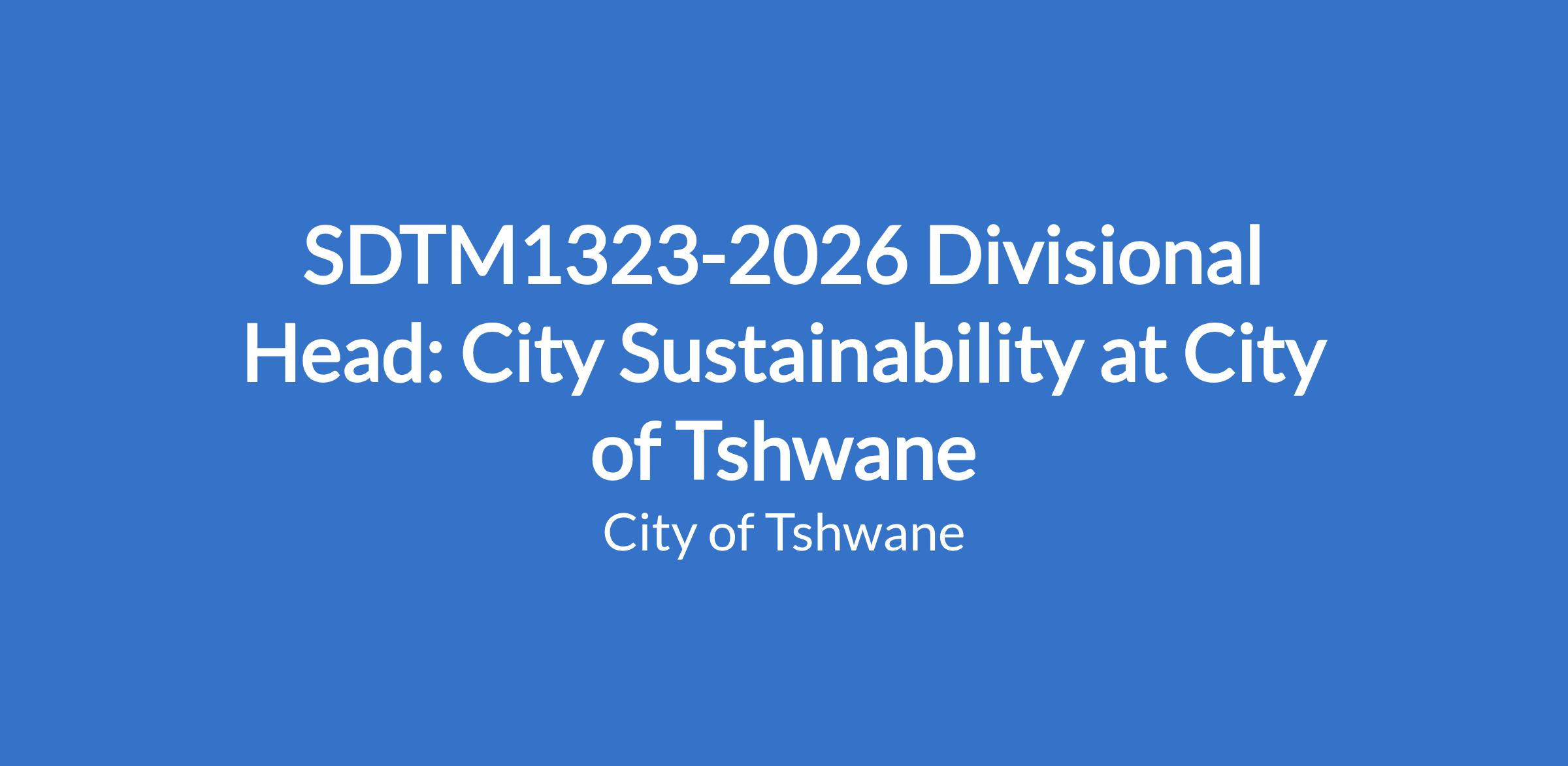 SDTM1323-2026 Divisional Head: City Sustainability at City of Tshwane