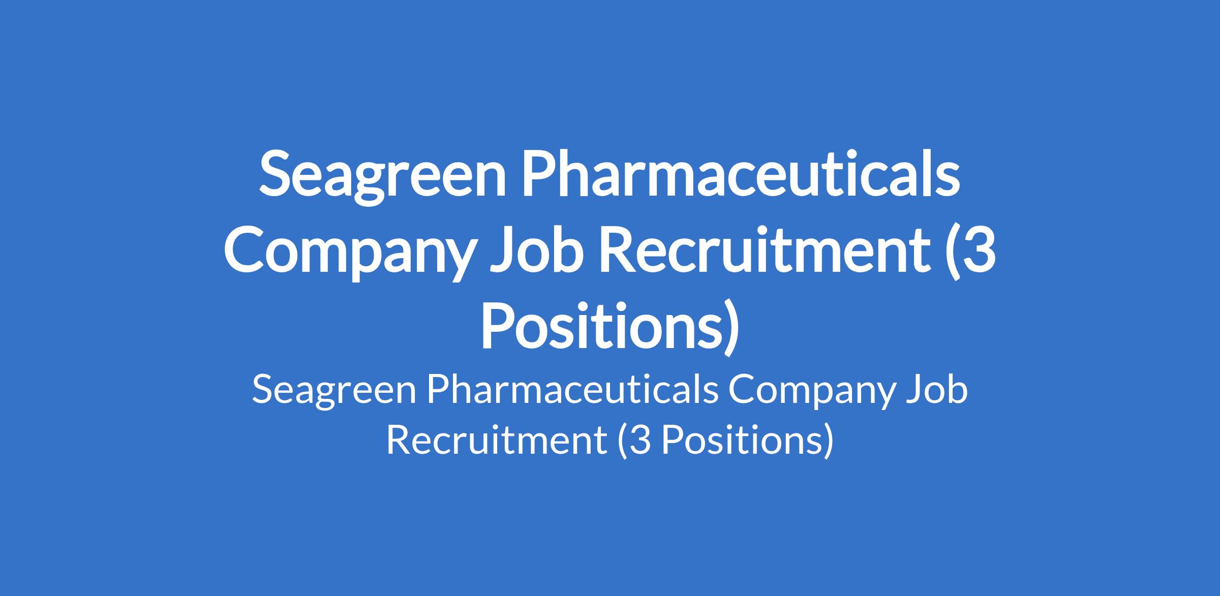 Seagreen Pharmaceuticals Company Job Recruitment (3 Positions)
