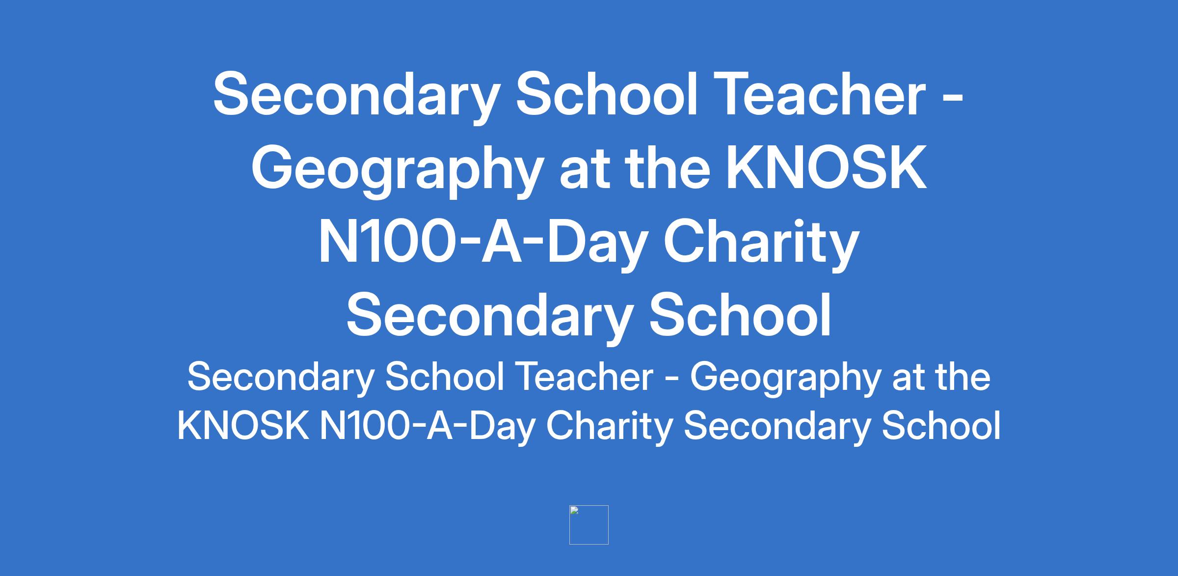 Secondary School Teacher - Geography at the KNOSK N100-A-Day Charity Secondary School