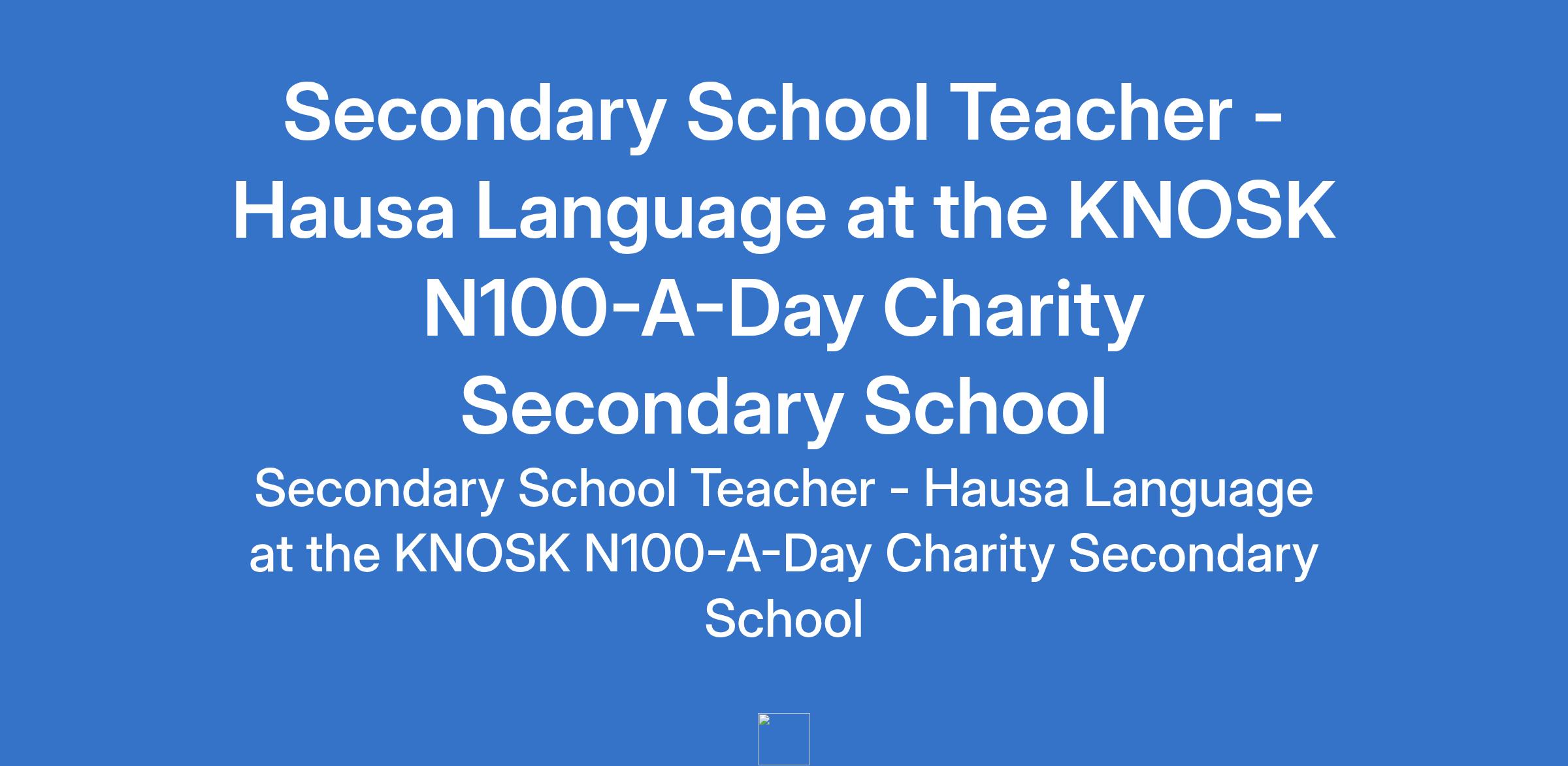 The KNOSK N100-A-Day Charity Secondary School is recruiting to fill the position of: Secondary School Teacher - Hausa Language. The position is located in Abuja (FCT). Interested candidates should possess a B.Ed / B.Sc + PGDE / NCE in relevant subject.
