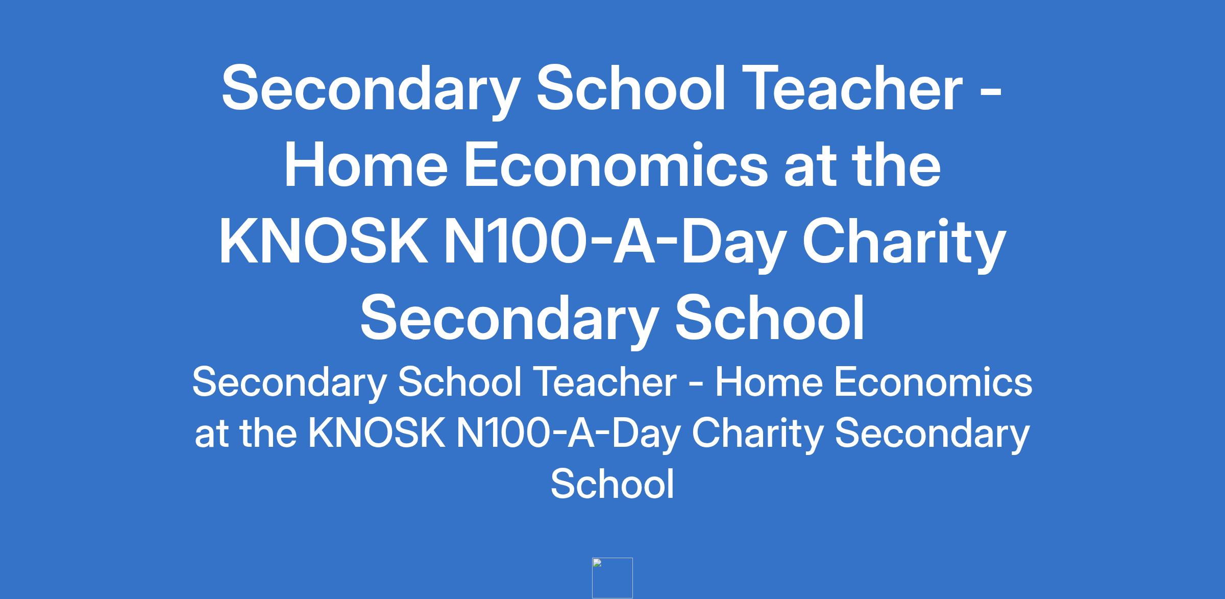 The KNOSK N100-A-Day Charity Secondary School is recruiting to fill the position of: Secondary School Teacher - Home Economics. The position is located in Abuja (FCT). Interested candidates should possess a B.Ed / B.Sc + PGDE / NCE in relevant subject.