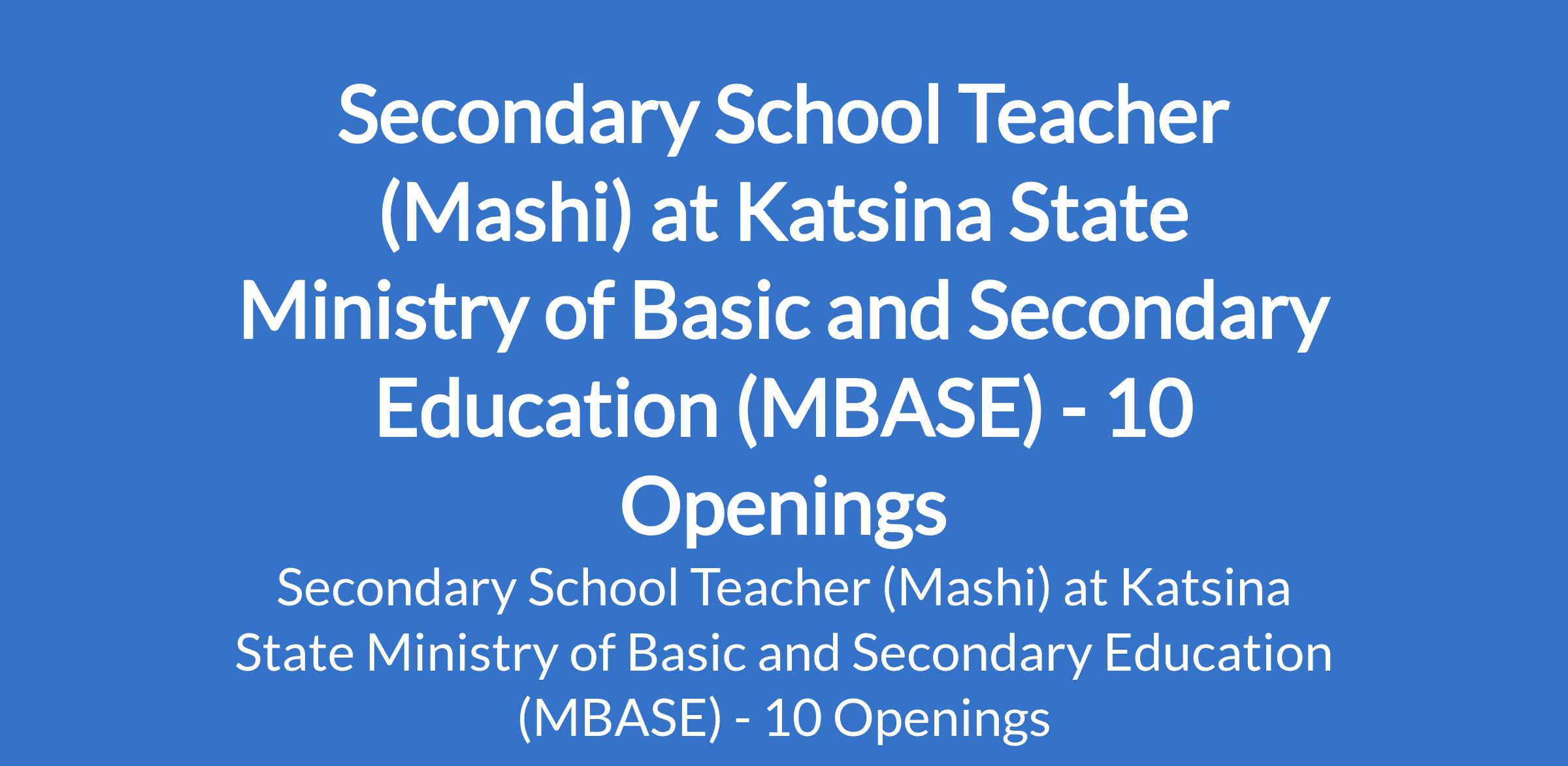 Katsina State Ministry of Basic and Secondary Education (MBASE) is inviting applications from suitable candidates to fill the position of: Secondary School Teacher. The position is located in Mashi, Katsina State. Interested candidates should possess a B.Ed in a relevant field or its equivalent.