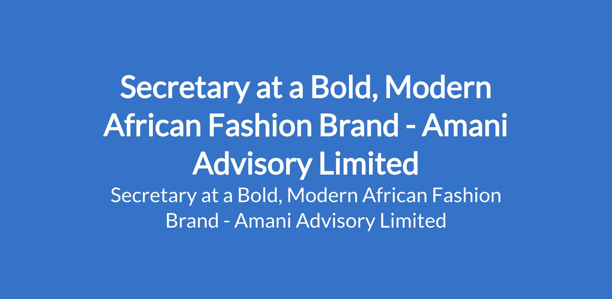 Amani Advisory Limited - Our client, a bold, modern African fashion brand is recruiting to fill the position of: Secretary. The position is located in Sangotedo, Lagos State. Salary: N 150,000 per month. Interested candidates should possess a minimum of OND / HND / Bachelors Degree in Business Administration or related field with 13 years experience in a similar administrative or retail role (fashion retail preferred).