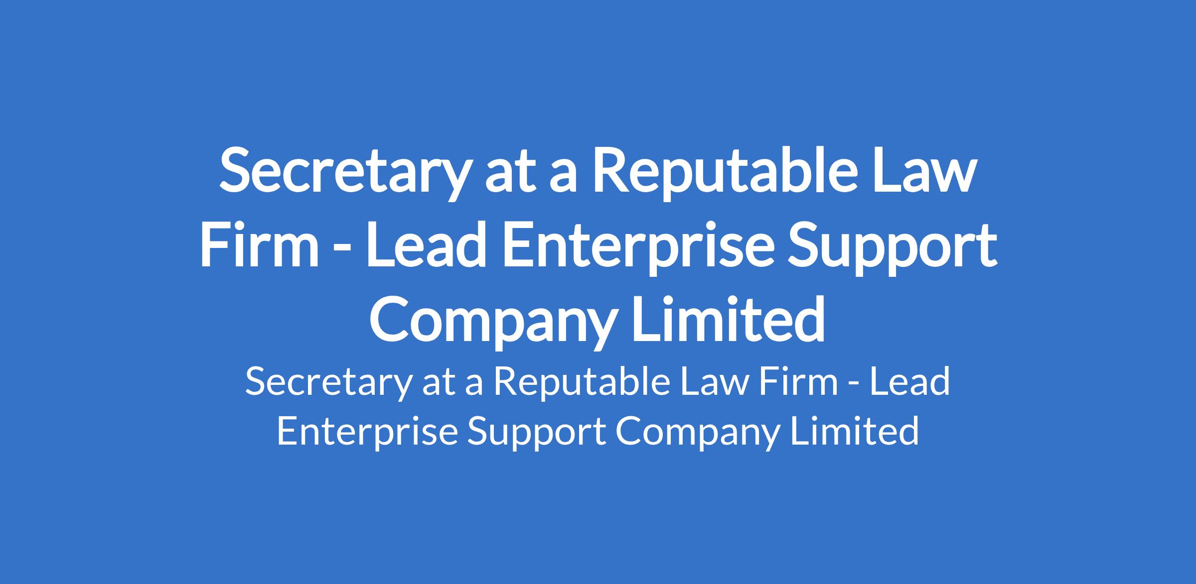 Lead Enterprise Support Company Limited - Our client, a reputable Law firm, is recruiting to fill the position of: Secretary. The position is located in Ikoyi, Lagos State. Salary: N200,000 / month. Interested candidates should possess a minimum of B.Sc. or HND qualification with 35 years of experience as a Secretary, preferably in a law firm or professional services environment.