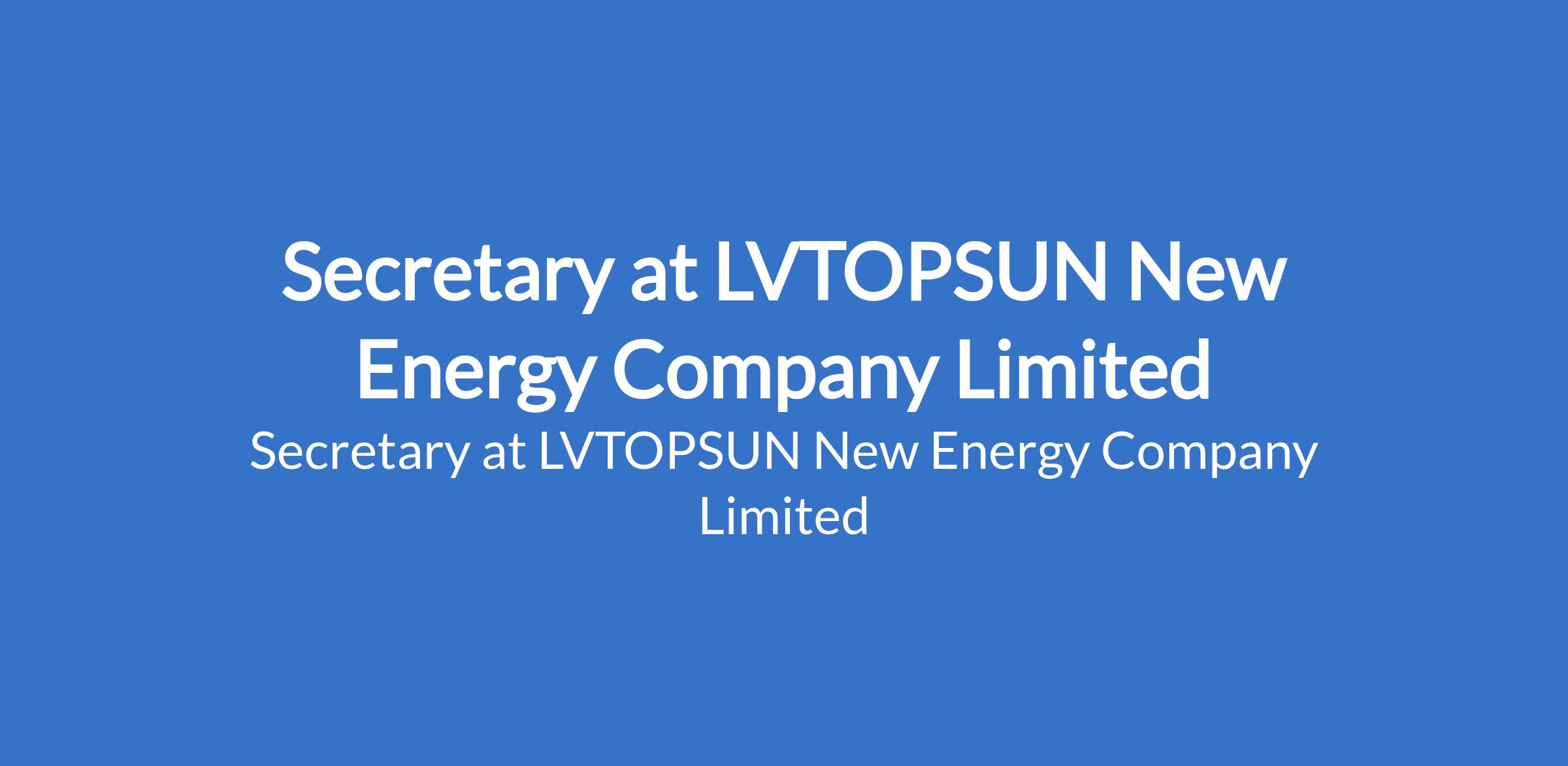 LVTOPSUN New Energy Company Limited is recruiting to fill the position of: Secretary. The position is located in Amuwo Odofin Lagos State. Interested candidates should possess a B.Sc Degree / HND qualification in Business Administration, Office Management, Secretarial Studies, or a related field with 5 - 8 years of experience.