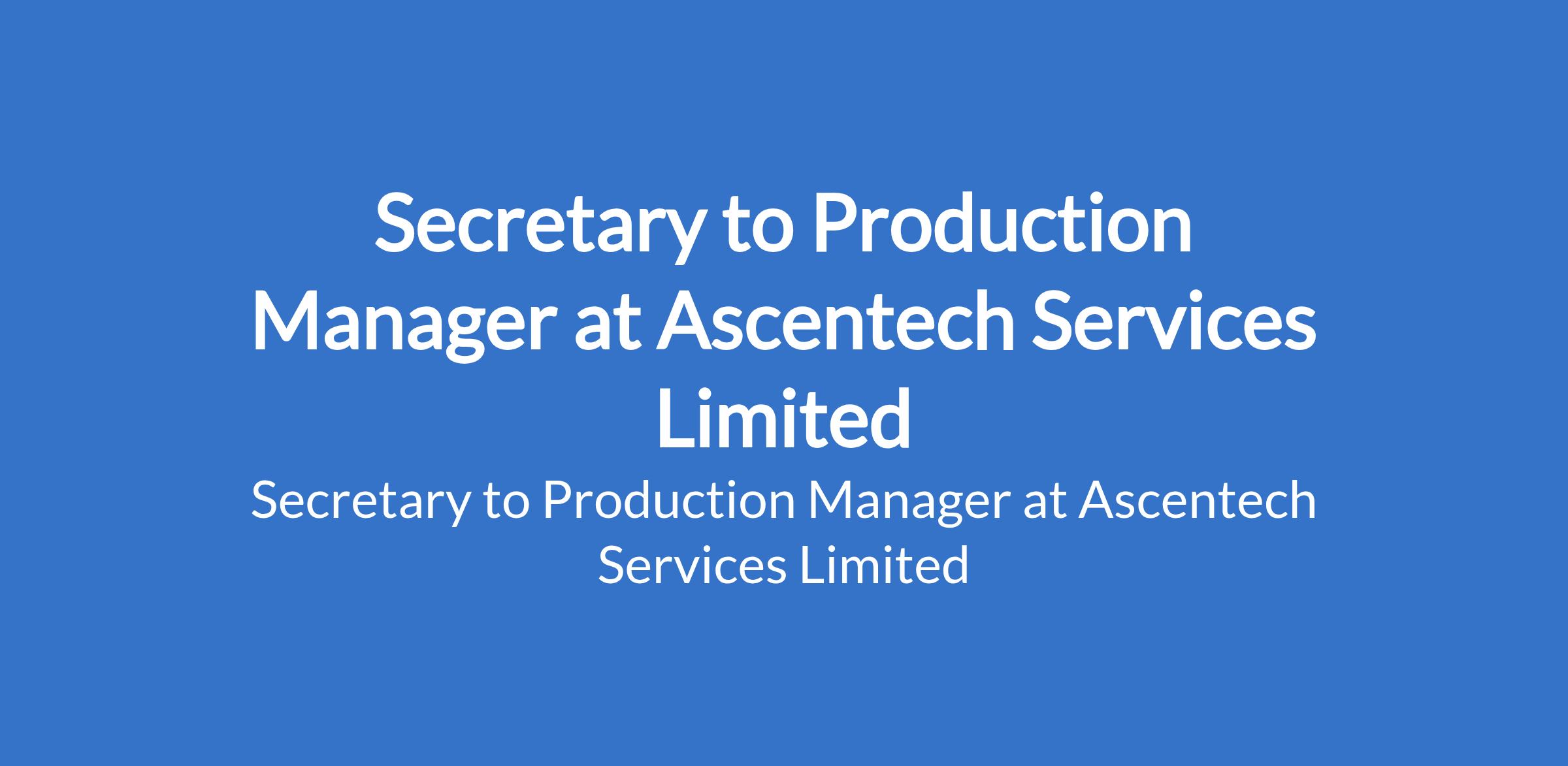 Ascentech Services Limited is recruiting to fill the position of: Secretary to Production Manager. The position is located in Oshodi, Lagos State. Salary: N300,000 monthly. Interested candidates should possess a Bachelors Degree or Diploma in Business Administration, Office Management, or related fields with 4 - 6 years experience in manufacturing or joinery.