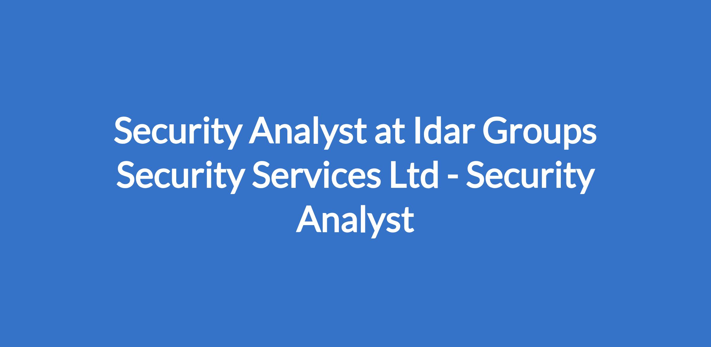Security Analyst at Idar Groups Security Services Ltd - Security Analyst