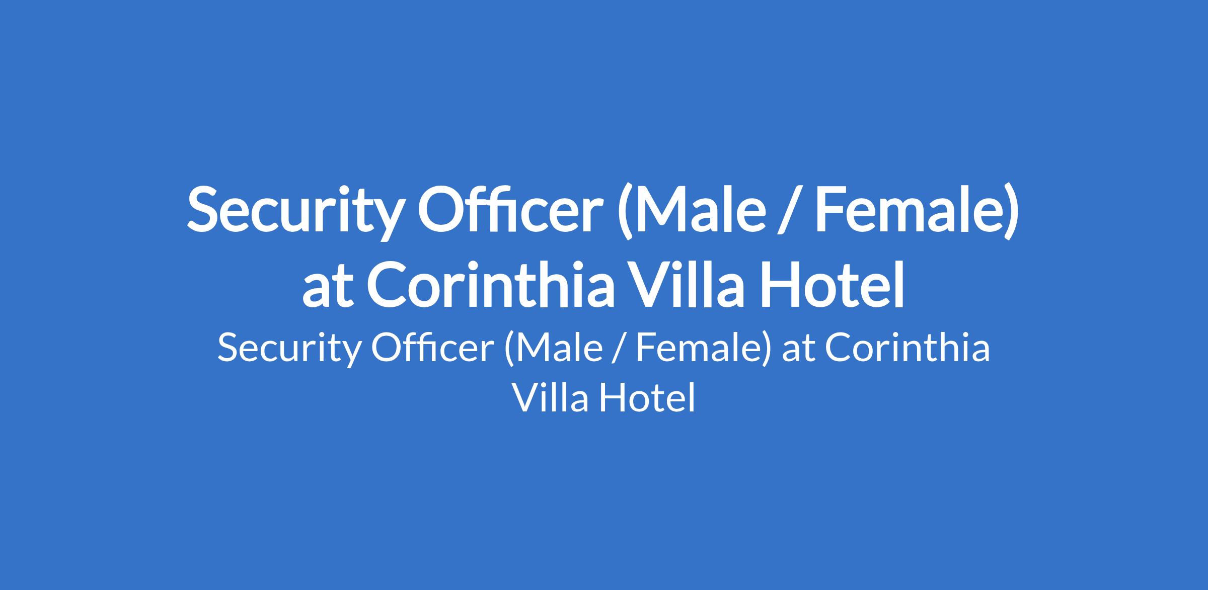 Security Officer (Male / Female) at Corinthia Villa Hotel