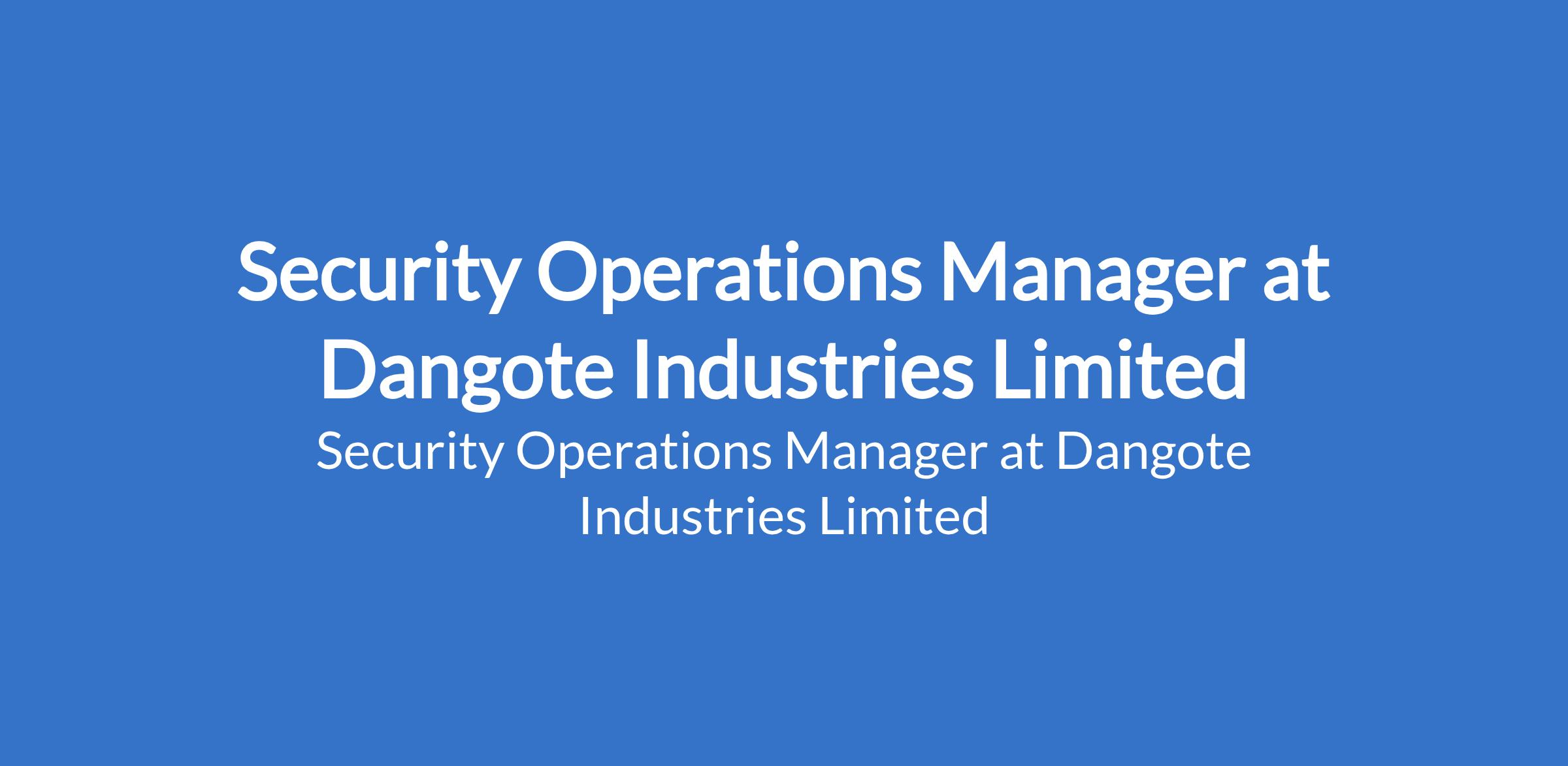 Dangote Industries Limited is recruiting to fill the position of: Security Operations Manager. The position is located in Obajana, Kogi State. Interested candidates should possess a Bachelors Degree in Security Management, Criminology, or related fields with 5-7 years experience in security operations, with at least 5 years in a managerial or leadership role.
