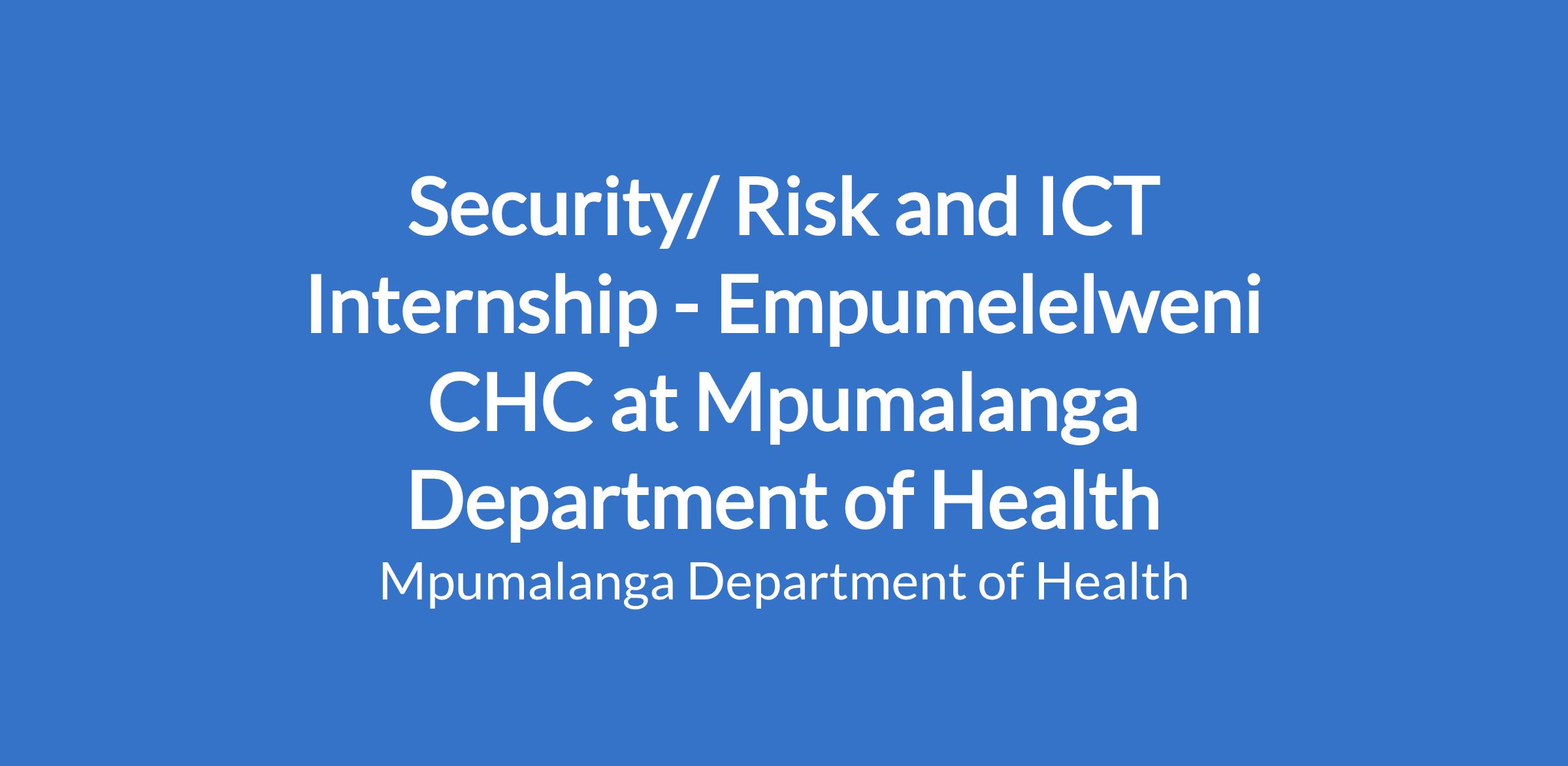 Security/ Risk and ICT Internship - Empumelelweni CHC at Mpumalanga Department of Health