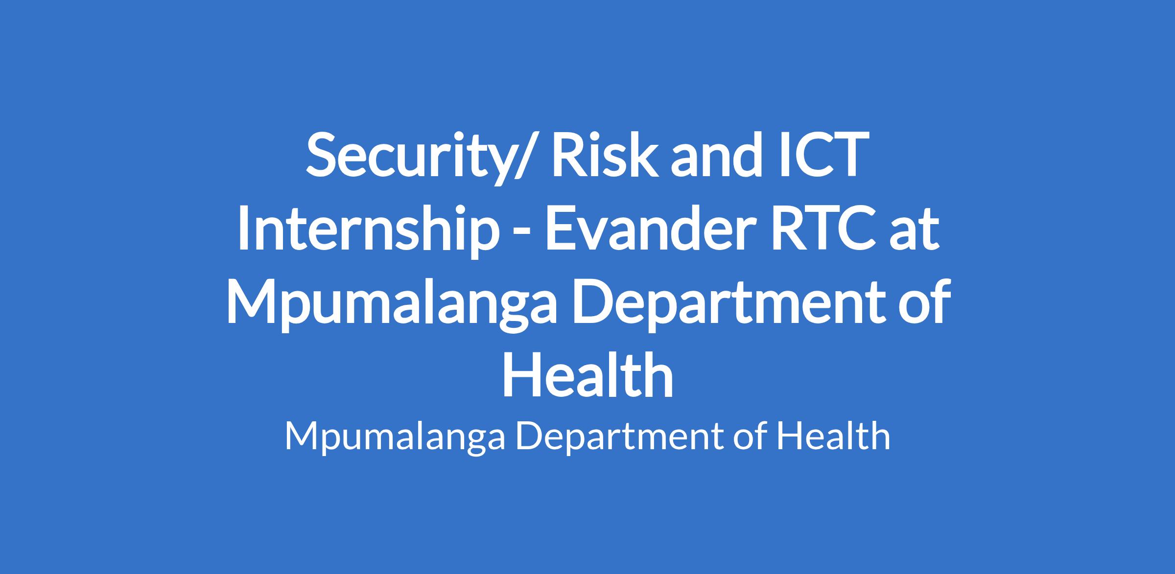 Security/ Risk and ICT Internship - Evander RTC at Mpumalanga Department of Health