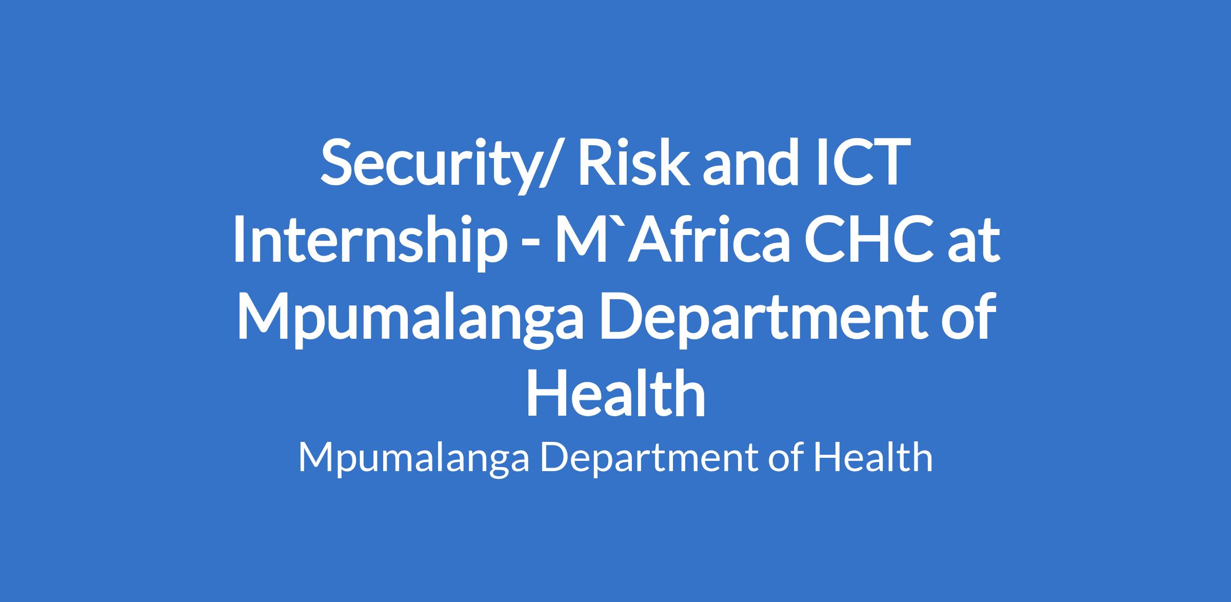 Security/ Risk and ICT Internship - M`Africa CHC at Mpumalanga Department of Health