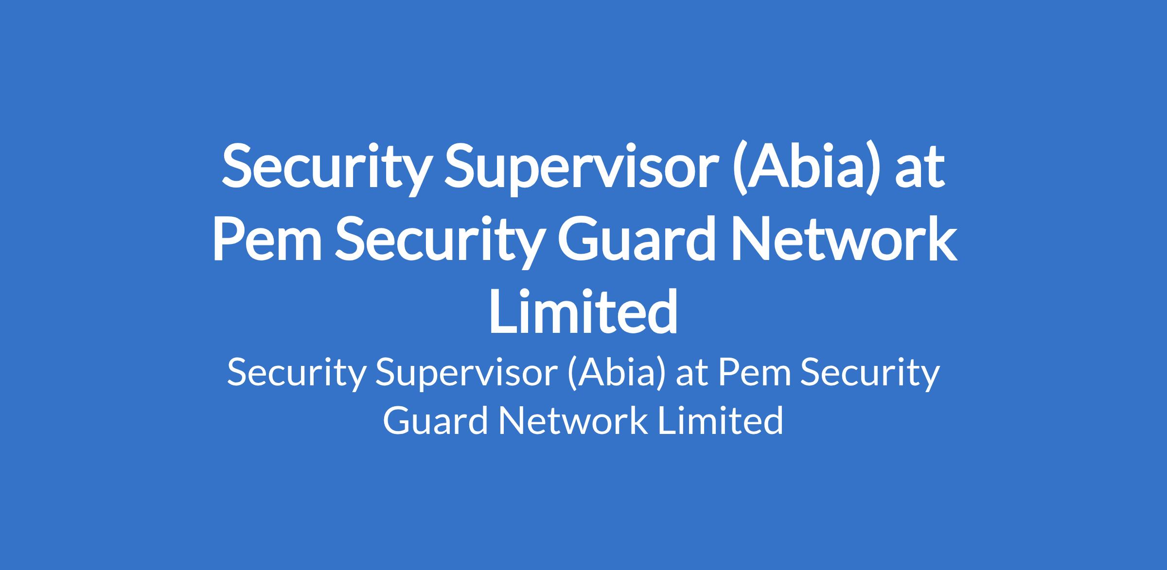 Pem Security Guard Network Limited is recruiting to fill the position of: Security Supervisor. The position is located in Umuahia, Abia State. The ideal candidate will play a crucial role in overseeing the daily operations of our security personnel, ensuring the safety and security of our clients' properties and assets. Interested candidates should possess relevant qualifications with proven experience as a Security Supervisor or similar role in the security industry.