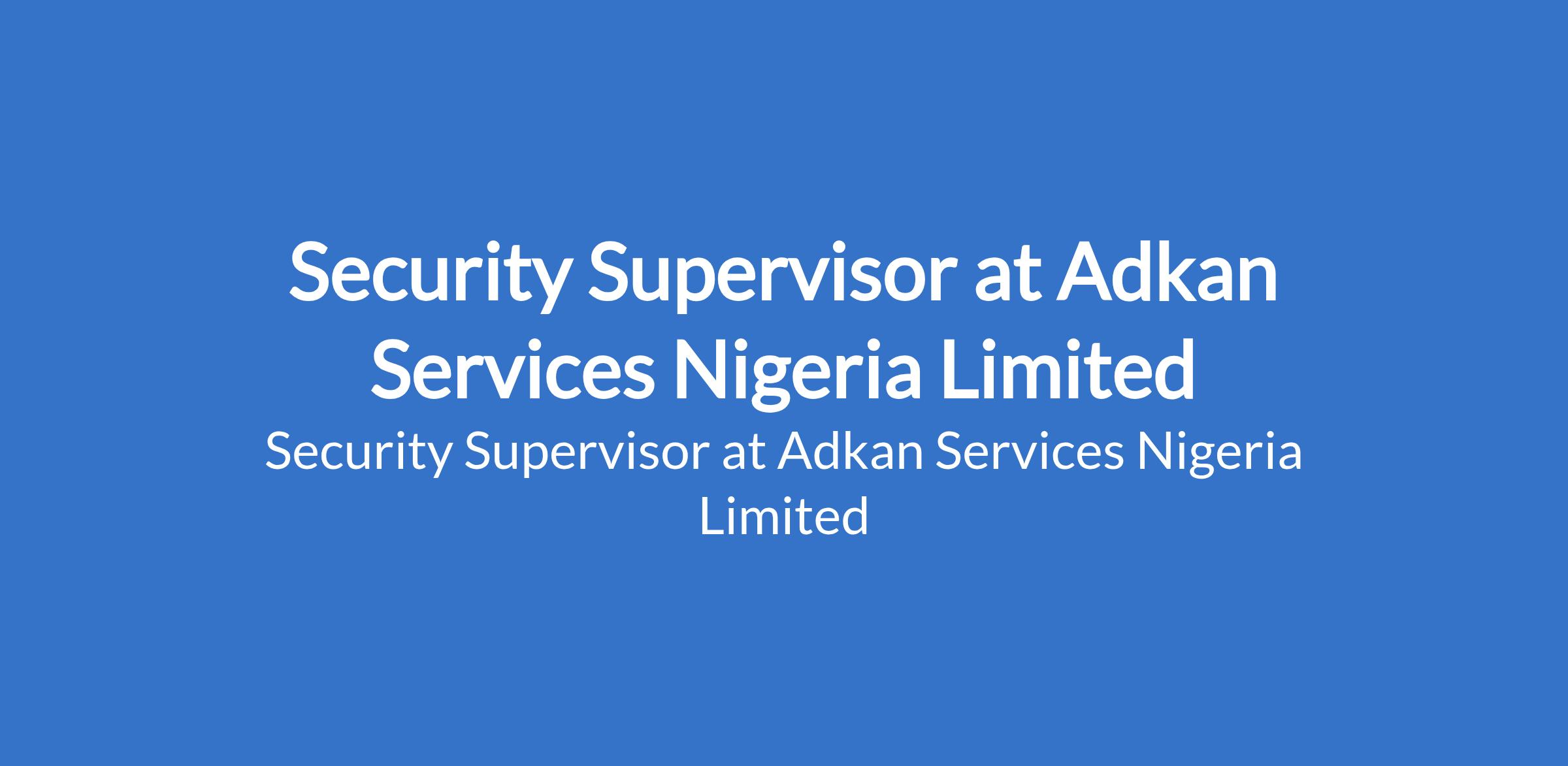 Adkan Services Nigeria Limited is recruiting to fill the position of: Security Supervisor. The position is located in Abuja (FCT). Interested candidates should possess an OND / HND / Bachelors Degree in Criminology, Security Management, or a related field (or equivalent military/police experience) with 3 5 years experience in private security, with at least 12 years in a supervisory role.