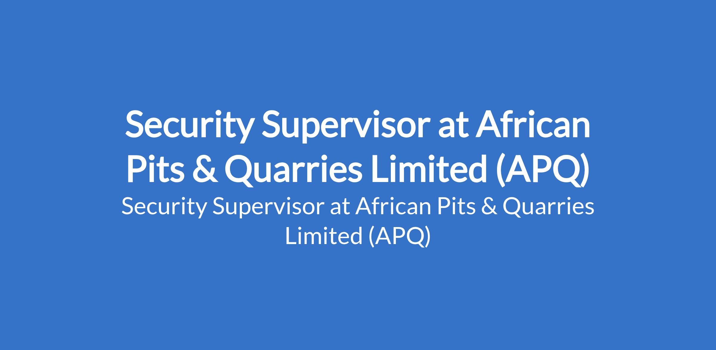 Security Supervisor at African Pits & Quarries Limited (APQ)