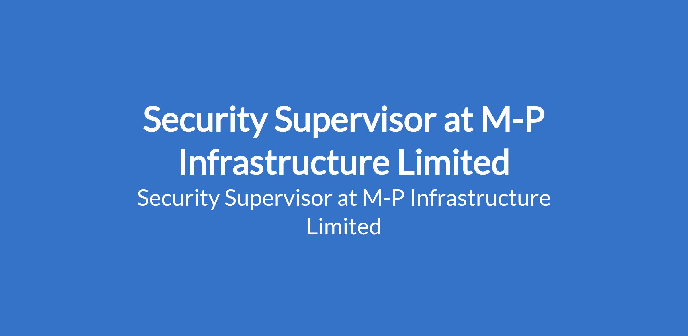 M-P Infrastructure Limited is recruiting to fill the position of: Security Supervisor. The position is located in Lekki, Lagos State. Interested candidates should possess a Diploma or Degree in Security Management, Criminology, or related fields with 5 - 8 years of experience in security supervision, preferably in telecom or infrastructure sectors.