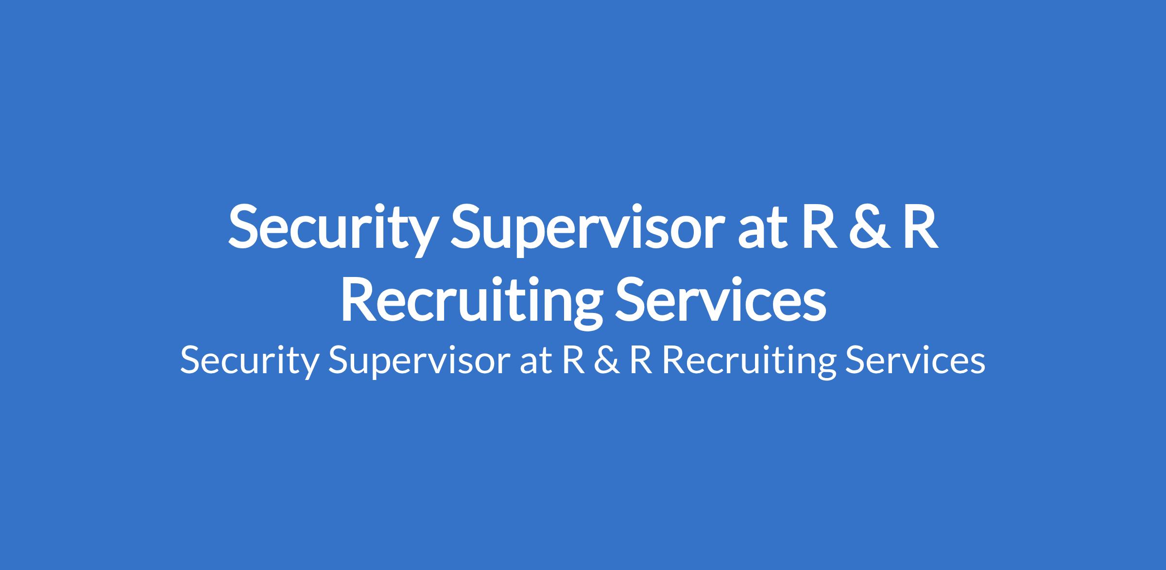 R & R Recruiting Services is recruiting to fill the position of: Security Supervisor. The position is located in Lekki, Lagos State. Salary: N130,000 - N150,000 per month. Interested candidates should possess a minimum of OND. or HND in any related field with a minimum of 3 4 years experience in a security role or supervisory position.