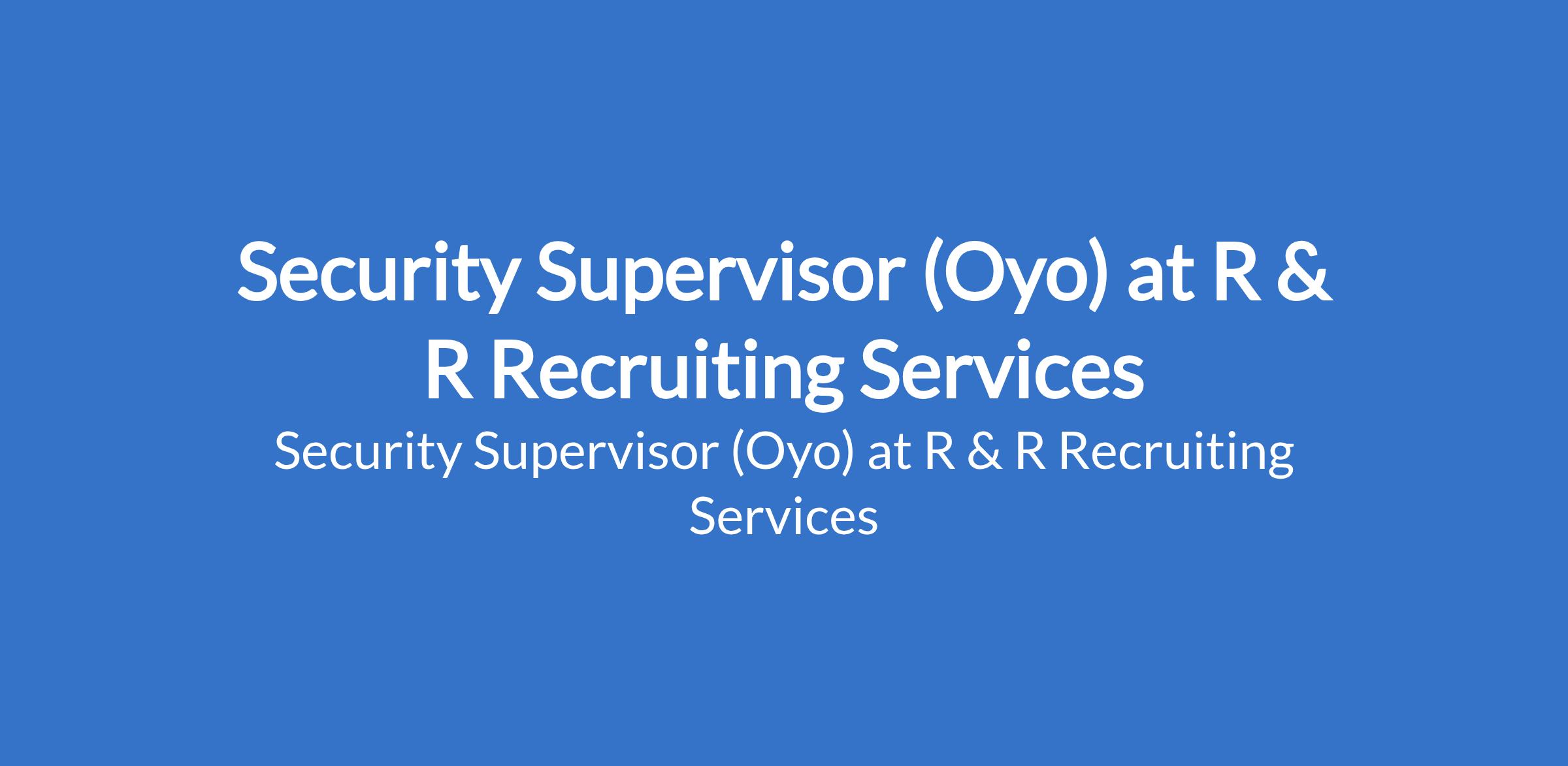 R & R Recruiting Services is recruiting to fill the position of: Security Supervisor. The position is located in Ibadan, Oyo State. Salary: N130,000 - N150,000 monthly. Interested candidates should possess minimum of an OND, HND, or equivalent qualification with 25 years of experience in security operations, with at least 1 year in a supervisory role.