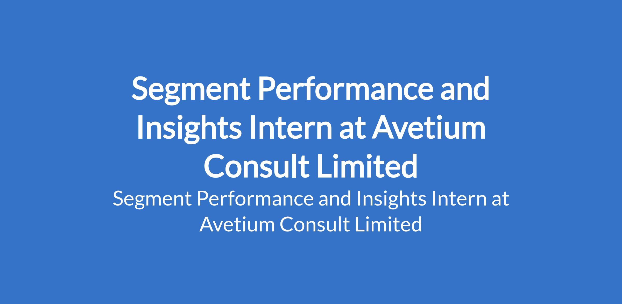 Avetium Consult Limited is recruiting to fill the position of: Segment Performance and Insights Intern. The position is located in Lagos State. Interested candidates should possess an Undergraduate or be a recent graduate in Business, Economics, Engineering, Data / Analytics, Marketing, or related discipline.