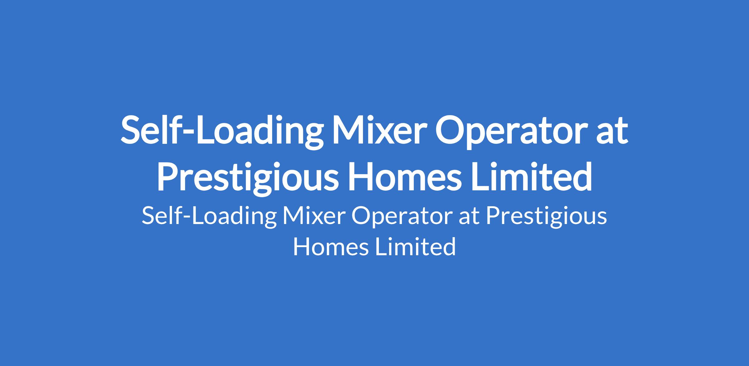 Prestigious Homes Limited is recruiting to fill the position of: Self-Loading Mixer Operator. The position is located in Lagos State. Interested candidates should possess an SSCE / OND or Trade Test certification with 5 7 years of experience operating self-loading concrete mixers on construction projects and a valid operators license or certification for self-loading mixers (where applicable).