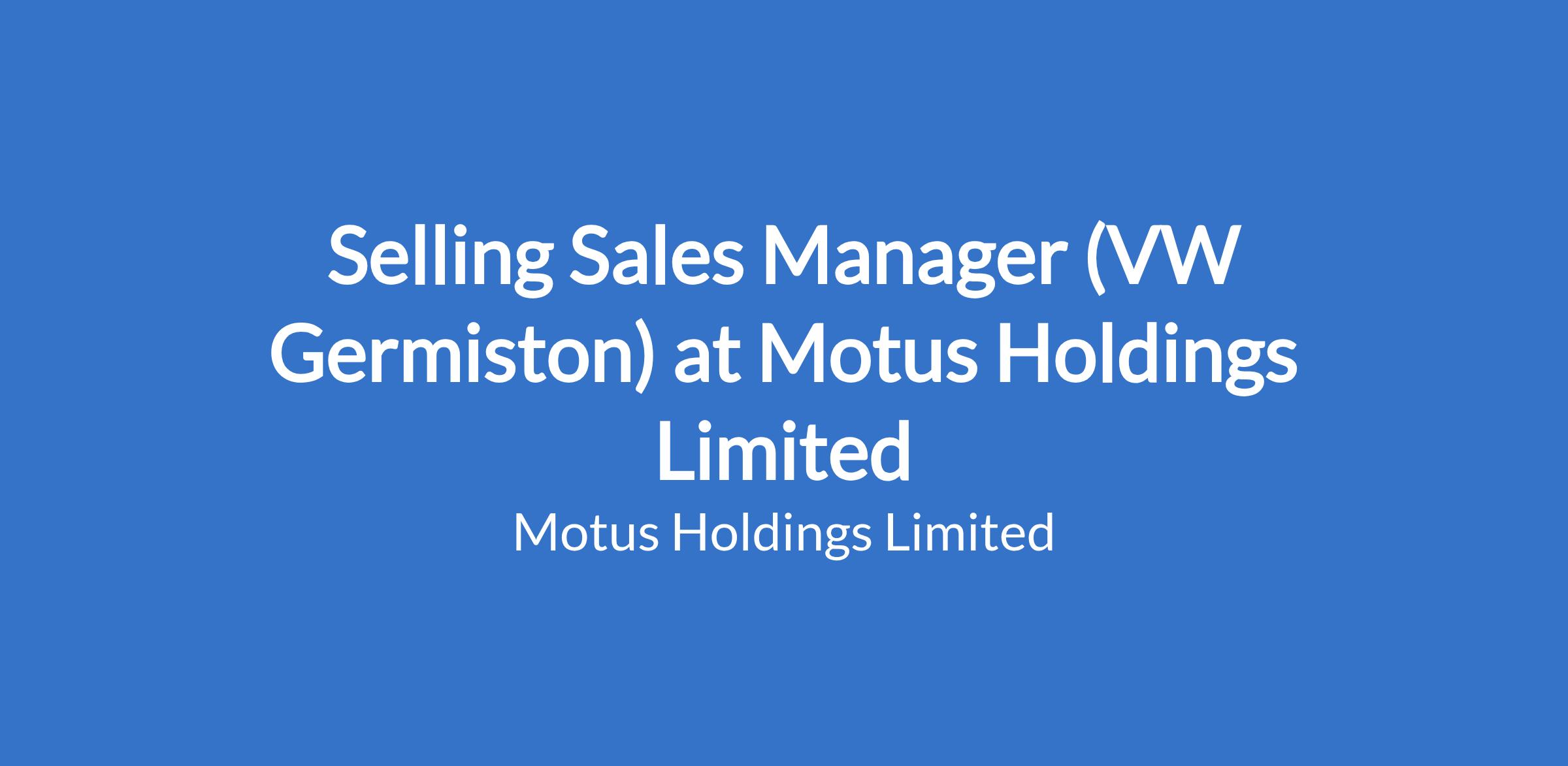 Selling Sales Manager (VW Germiston) at Motus Holdings Limited