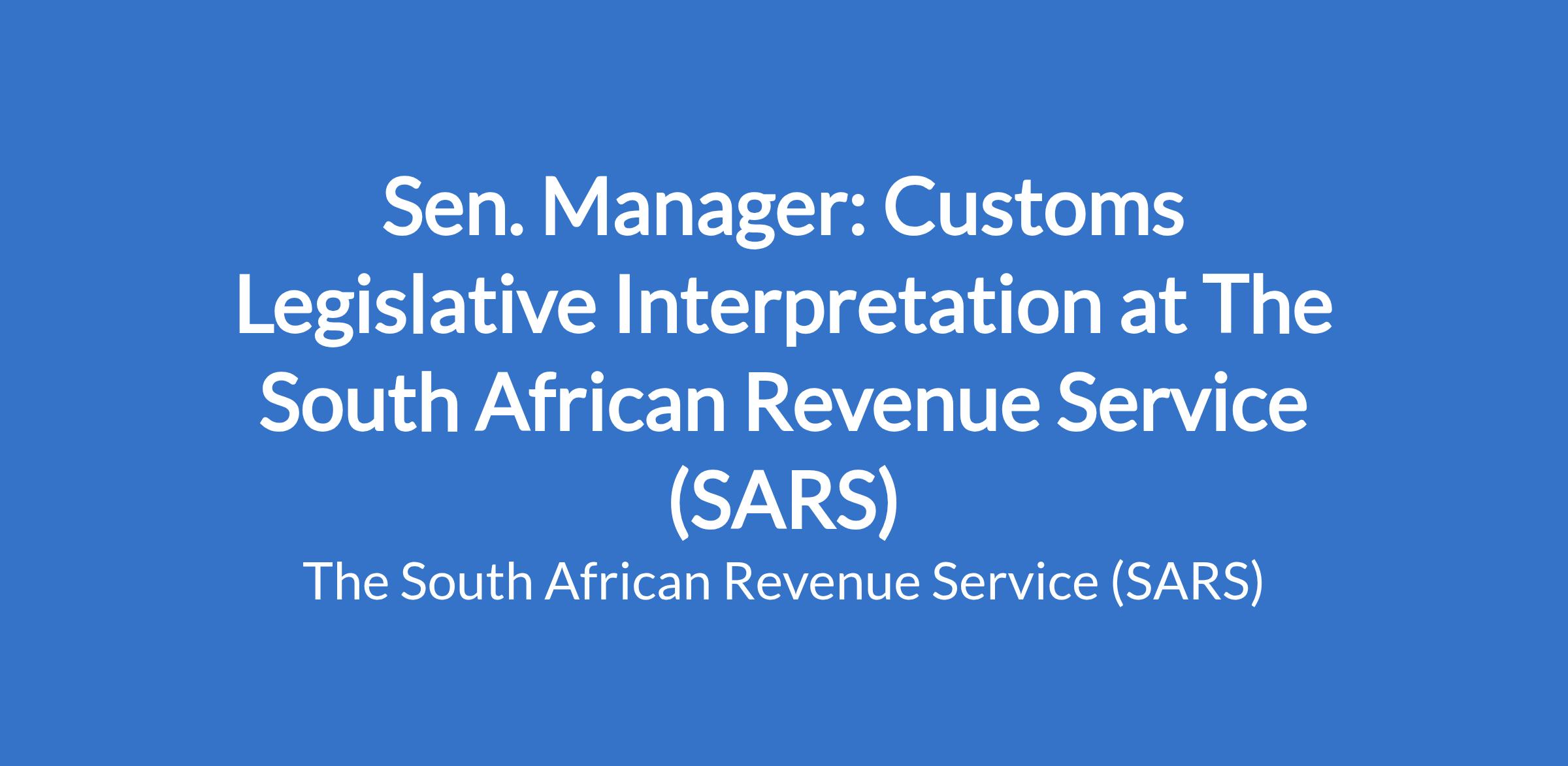 The candidate is expected to oversee the functions of Tariff, Valuations and Rules of Origin and performing research in order to provide high level guidance to senior management and departments, facilitating legislative and operational alignment across functions and influencing legislative strategy and implementation across the organisation and generating solutions where required