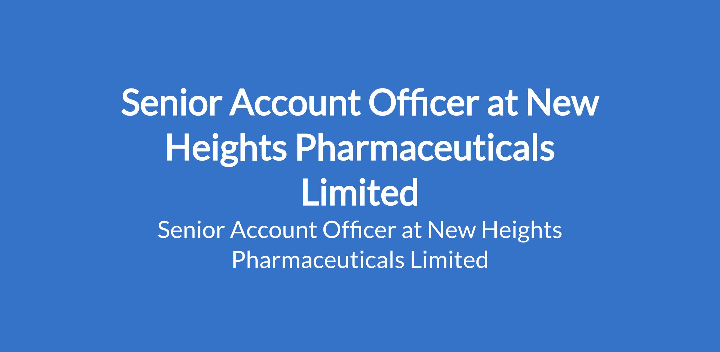 New Heights Pharmaceuticals Limited is recruiting to fill the position of: Senior Account Officer. The position is located in Lagos State. Interested candidates should possess a BSc / HND qualification in Accounting, Finance or related fields with 3-5 years experience.