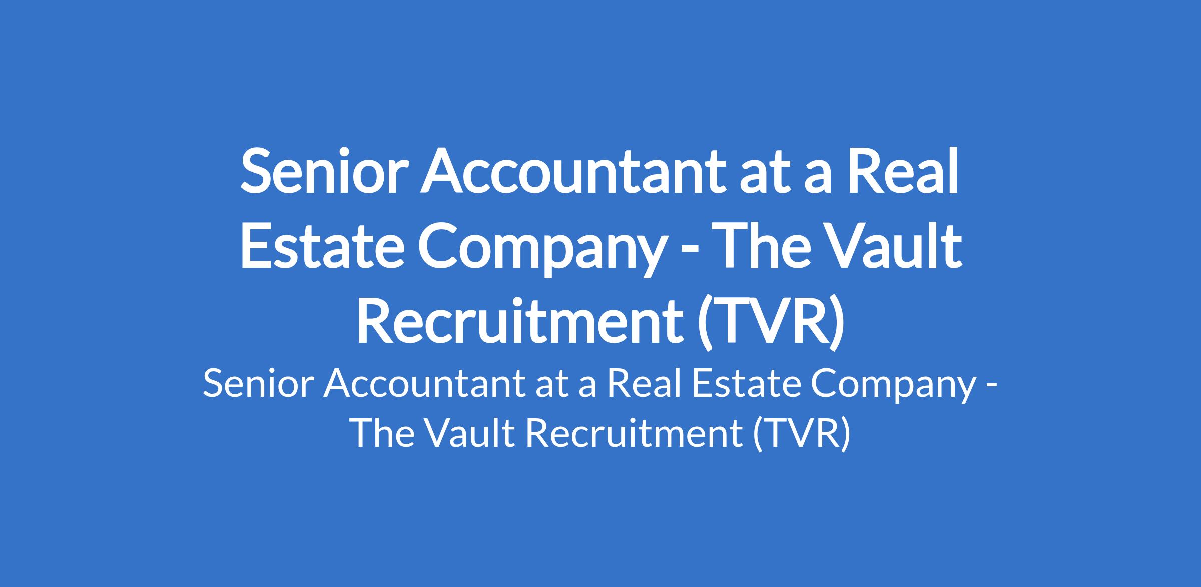 The Vault Recruitment (TVR) is recruiting to fill the position of: Senior Accountant. The position is located in Lagos State. Interested candidates should possess a BSc / HND in Accounting, Finance, or a related field with 5+ years of relevant accounting experience, comprising 2 years as a Team Lead and 3 years in a staff role, with proven exposure to real estate or property accounting.