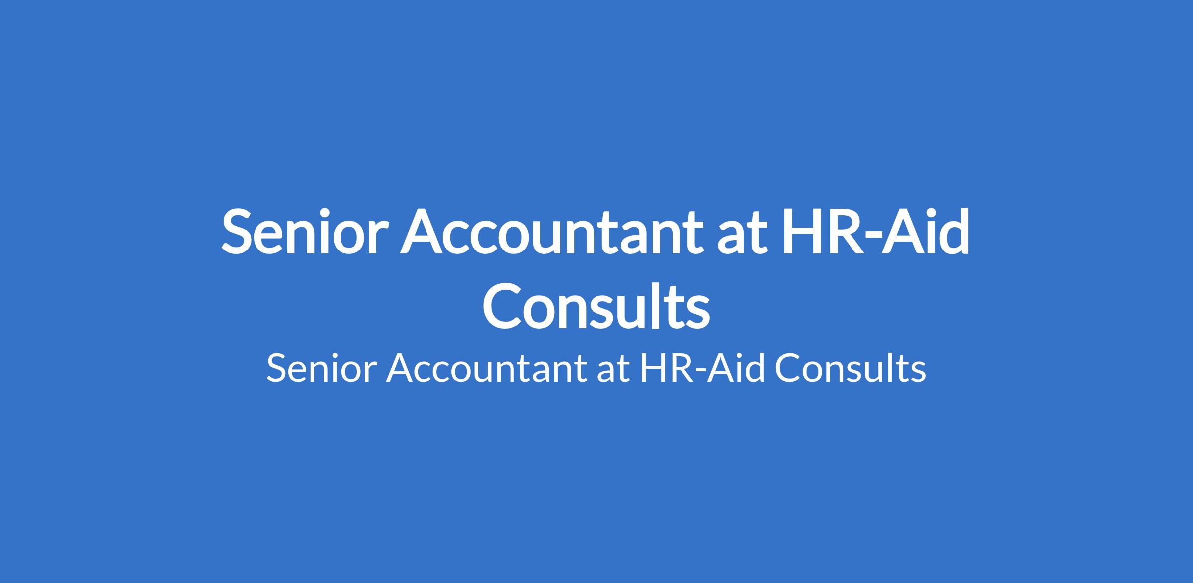 HR-Aid Consults is recruiting to fill the position of: Senior Accountant. The position is located in Ikoyi, Lagos State. Salary: N500,000 - N600,000 monthly. Interested candidates should possess a BSc. Degree in Accounting, Finance, or a related field with 58 years accounting experience.