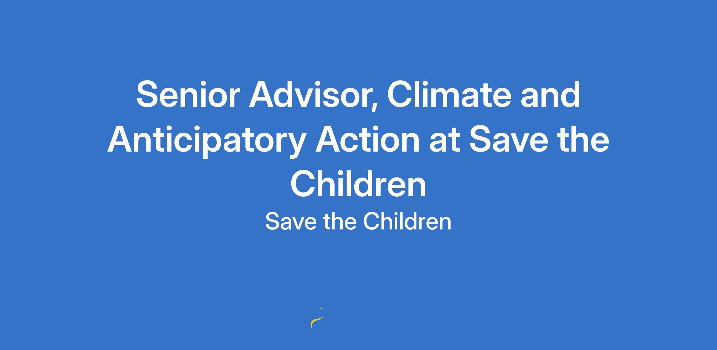 Senior Advisor, Climate and Anticipatory Action at Save the Children