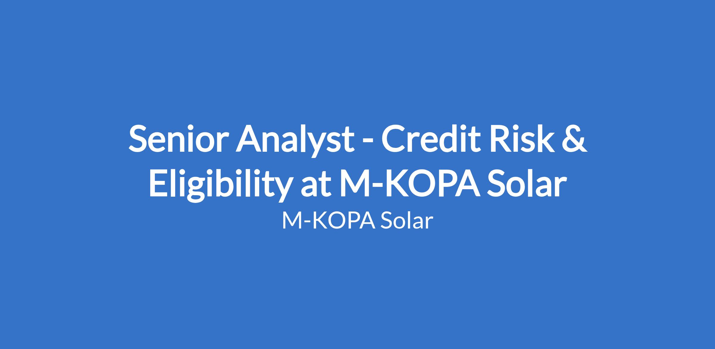 Senior Analyst - Credit Risk & Eligibility at M-KOPA Solar