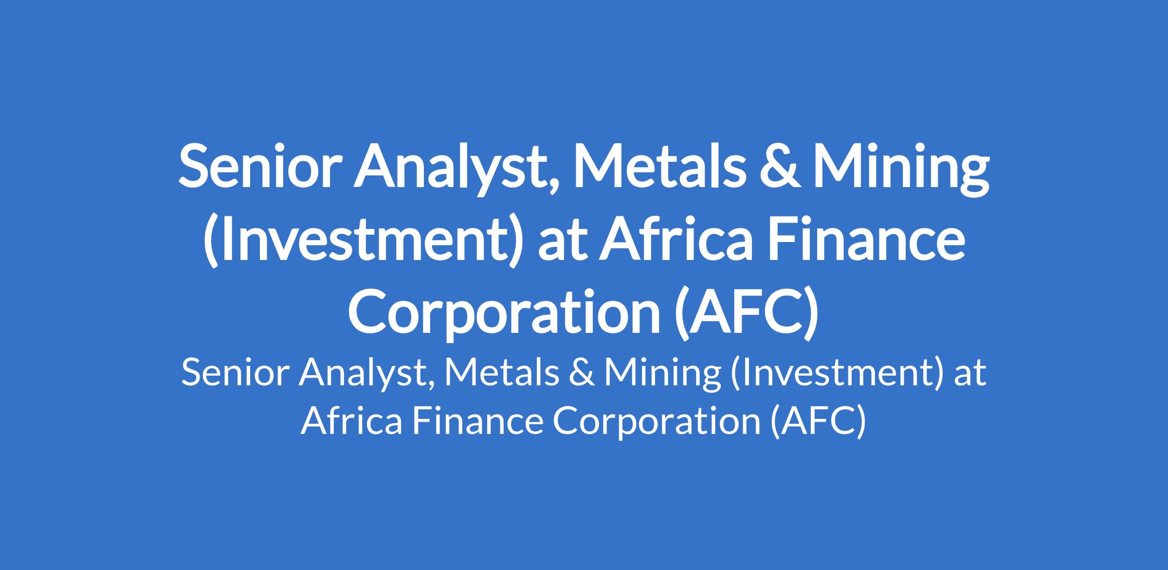 Africa Finance Corporation (AFC) is recruiting to fill the position of: Senior Analyst, Metals & Mining (Investment). The position is located in Lagos State. Interested candidates should possess a First Degree in Engineering (focus in Mining) or Geology, Economics, Finance or other related field of study with a demonstrated understanding of financial concepts; relevant advanced Degree e.g. Masters Degree in Business Administration, Engineering, Finance, or a related field of study with 3 - 5 years of work experience with at least 2 years of experience in direct investing, corporate finance, investment banking, accounting, lending, private equity or financial advisory functions.