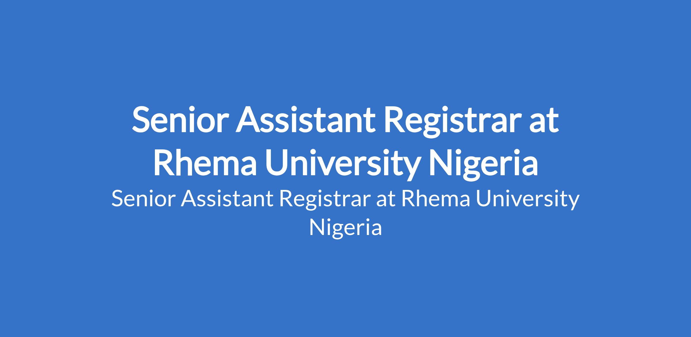 Rhema University Nigeria invites applications from suitably qualified candidates for the position of: Senior Assistant Registrar. The position is located in Aba, Abia State. Interested candidates should possess a Degree from an accredited University in any of the disciplines of Social Sciences, Law and Humanities, NYSC discharge certificate (where applicable) with at least Nine (9) years post qualification experience or a relevant Master's Degree plus at least three (3) years post qualification experience.