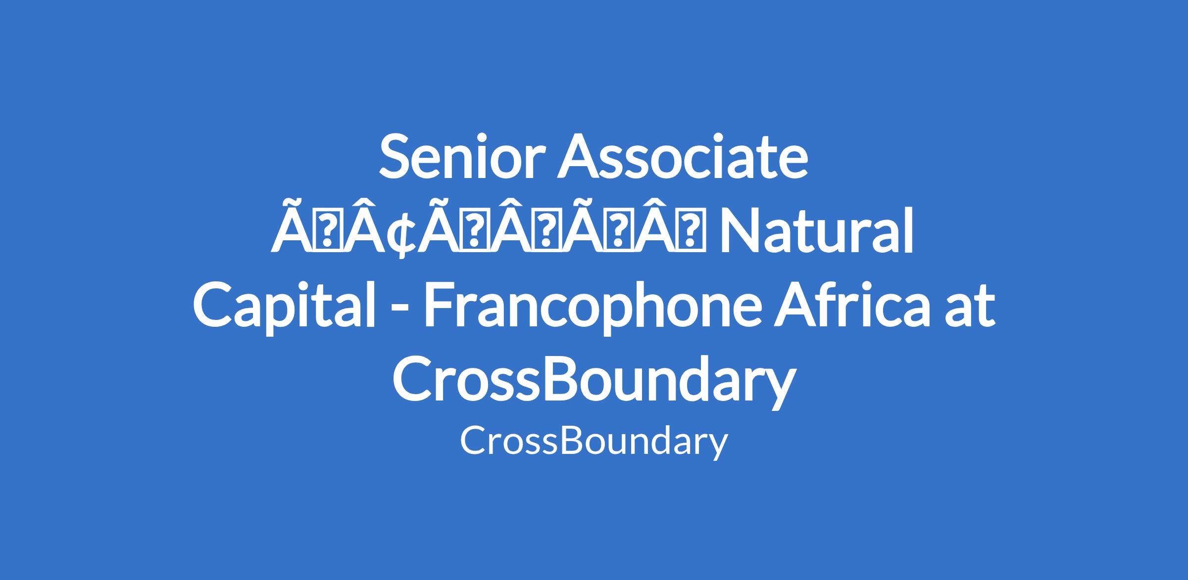 Senior Associate âÃÂàNatural Capital - Francophone Africa at CrossBoundary