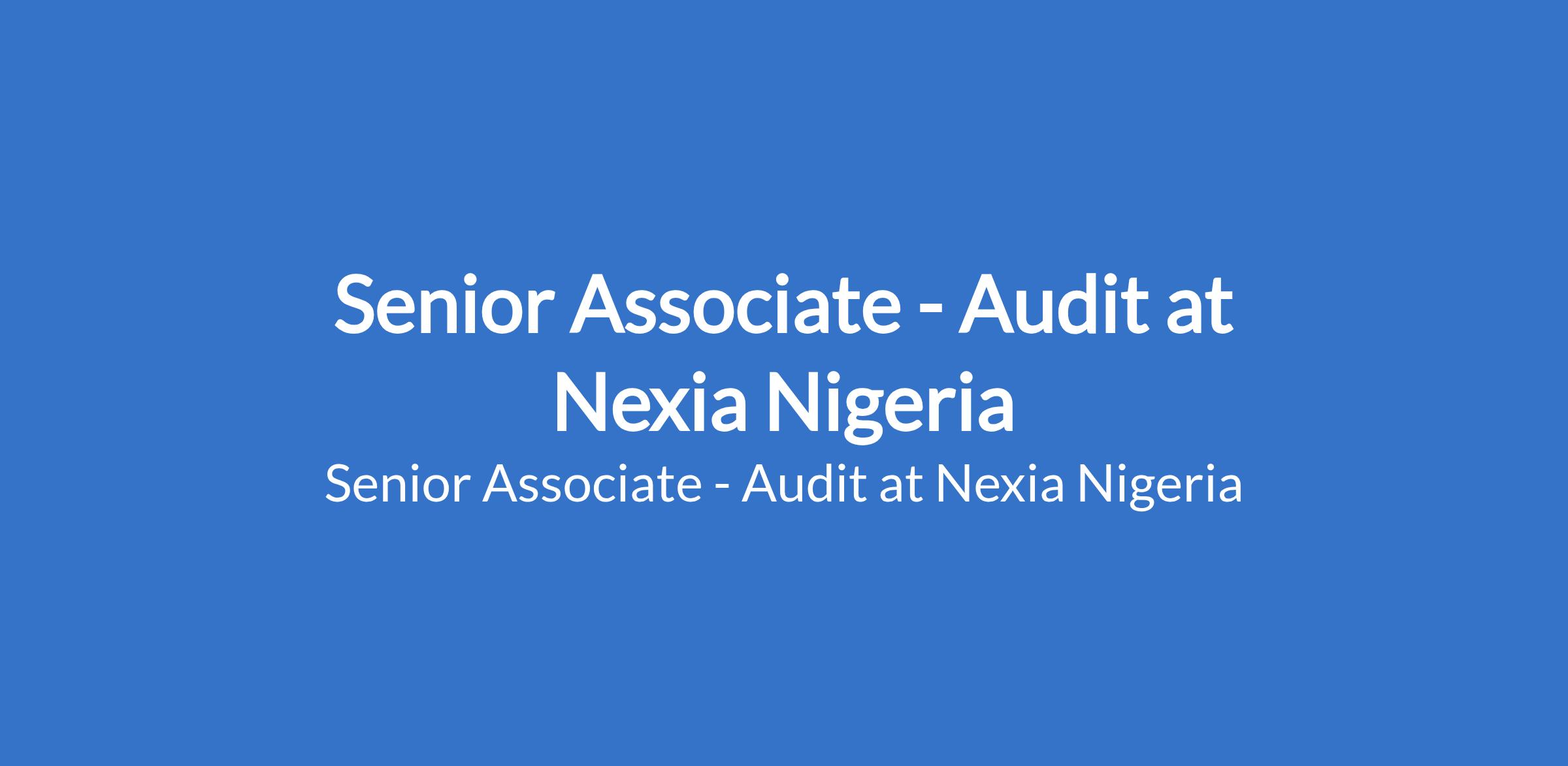 Nexia Nigeria is recruiting to fill the position of: Senior Associate - Audit. The position is located in Abuja (FCT). Interested candidates should possess a Bachelor's Degree or HND in Accounting, Finance, Economics or any relevant field with a minimum of second class lower or lower credit with 4-6 years post qualification experience.